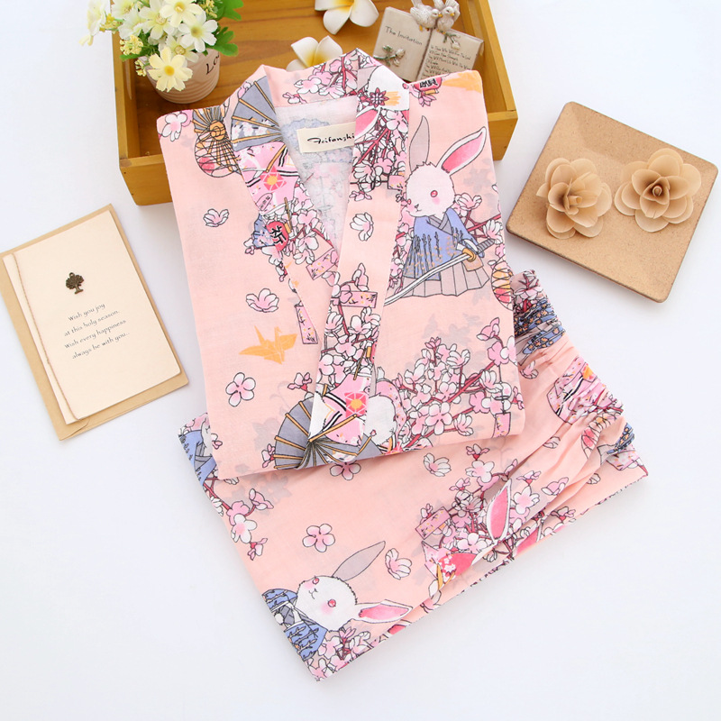 봄과 가을 일본 잠옷 커플 남자와 여자의 중국 기모노 면 린넨 세트 더블 거즈 면 일본 운동복 플러스 사이즈스토어 가기
