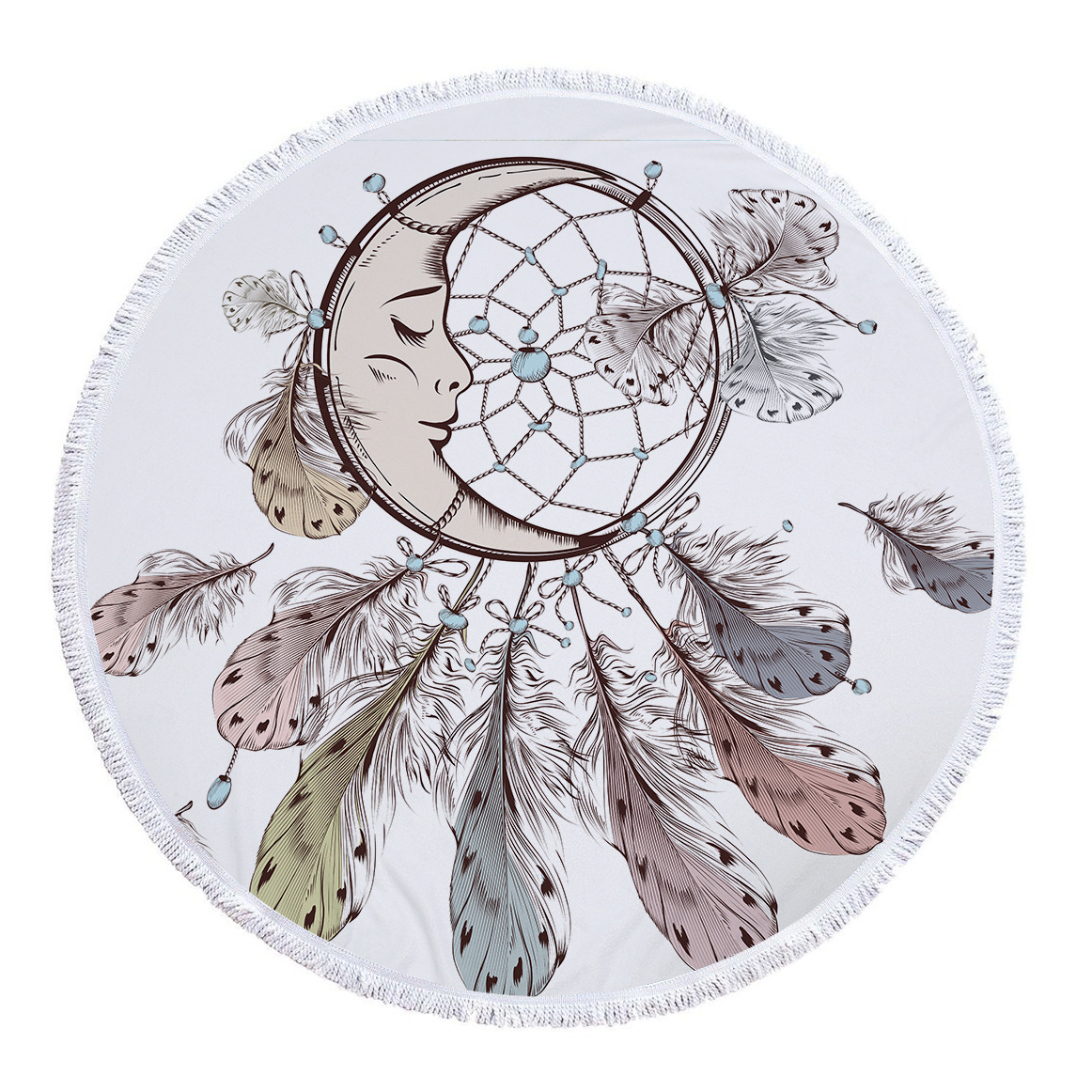 户外踏青野餐时坐垫.游泳后的披裹毛巾等等用途。边缘采用纯棉流苏,手感舒适.