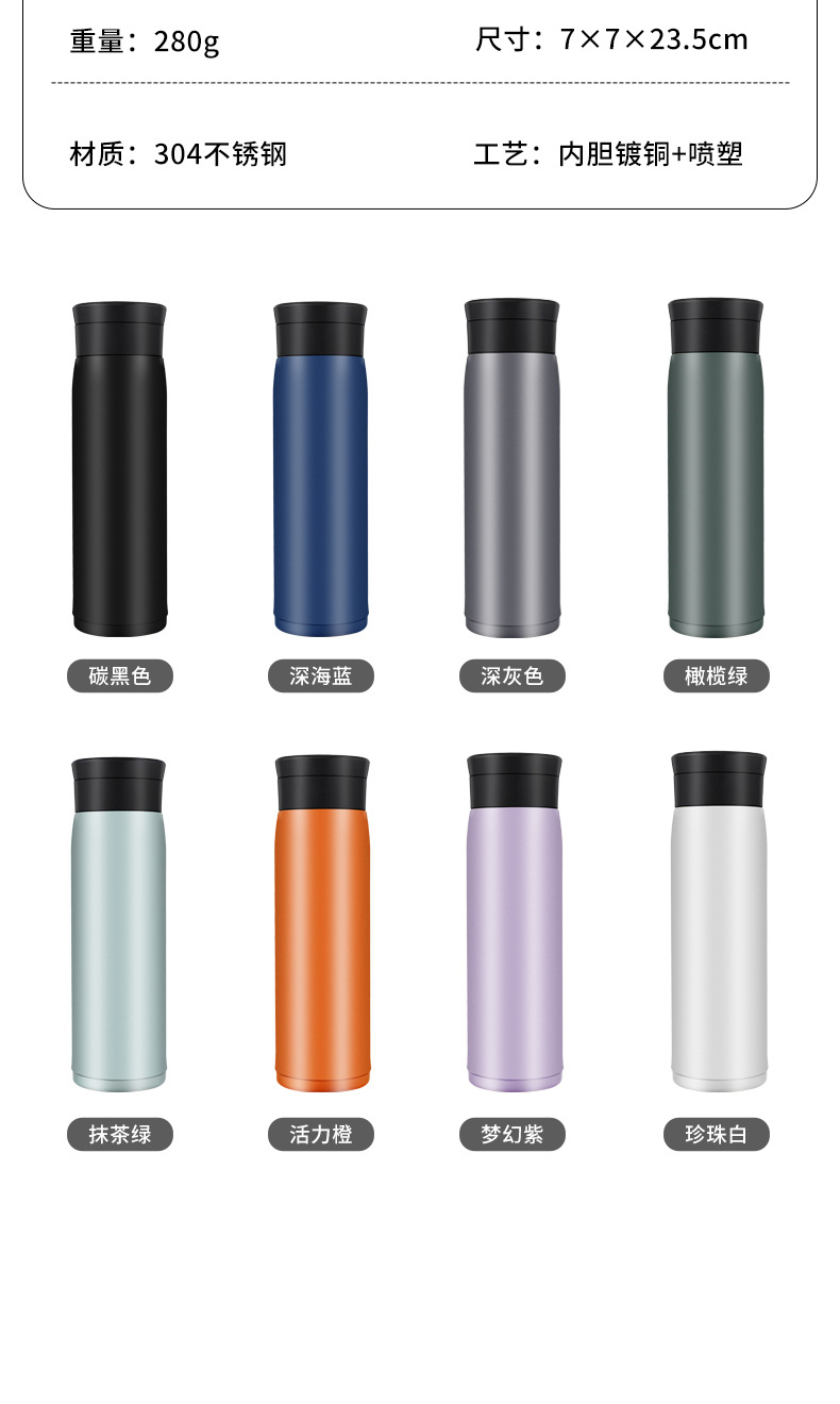 内胆镀铜,保温保冷持久。底部带有防滑底片,不易伤到杯底。