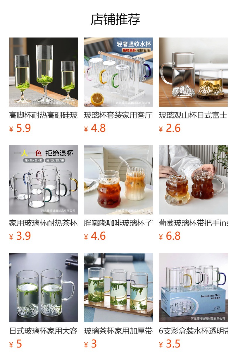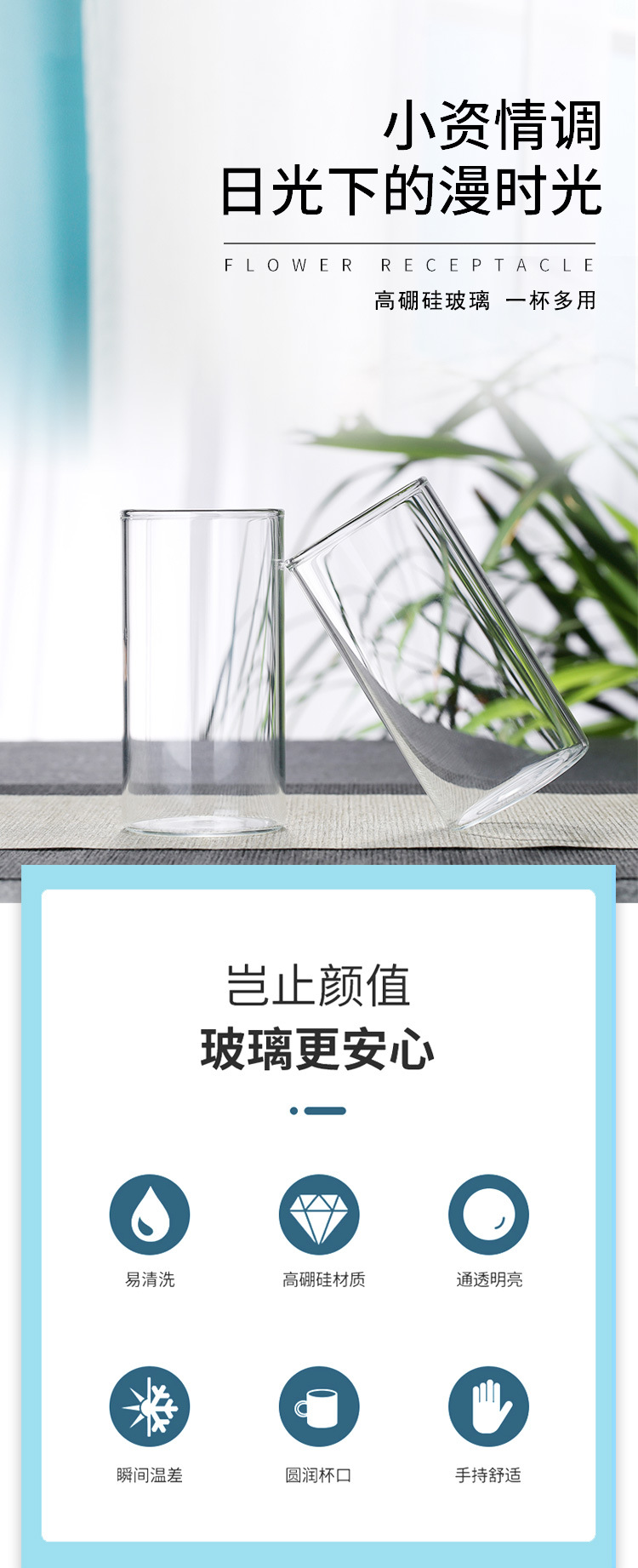 고붕규산염 내열 유리 가정용 끓는 물 고온 직선형 원통형 유리 단일컵 가정용 투명 식기컵스토어 가기