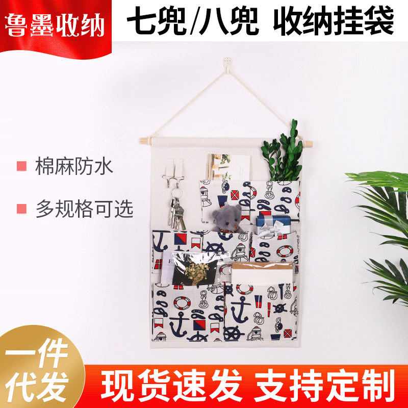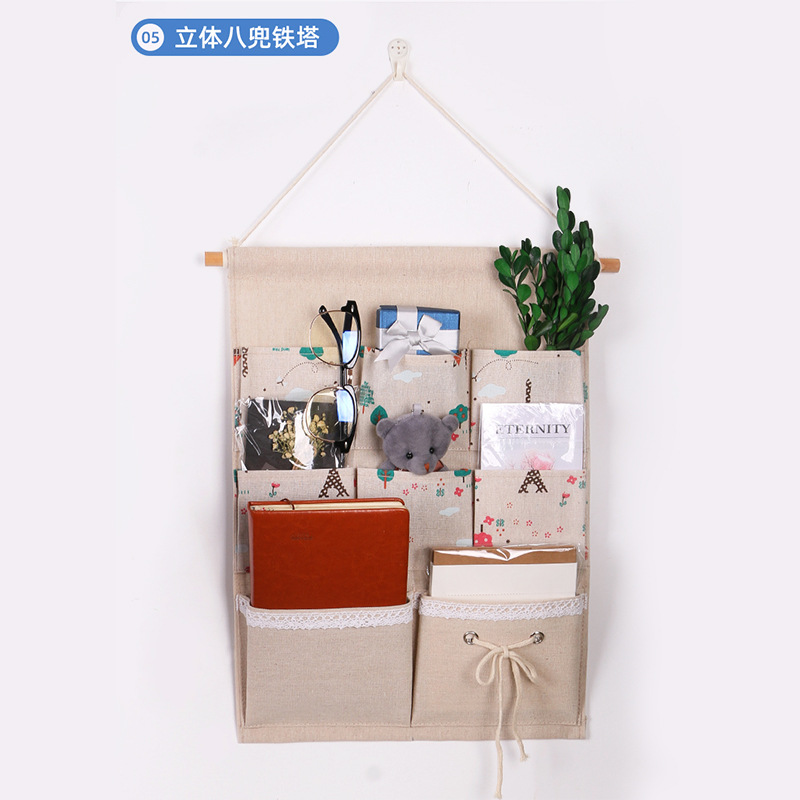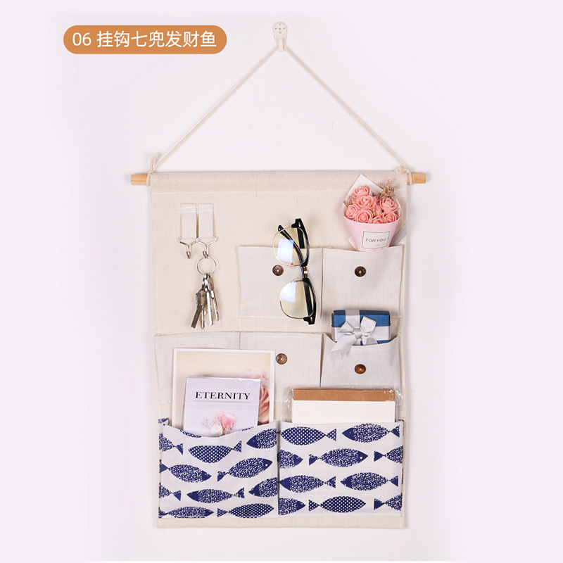7 면 린넨 홈 패브릭 보관 교수형 가방 기숙사 침실 옷장 벽걸이 형 수납 교수형 가방 도매