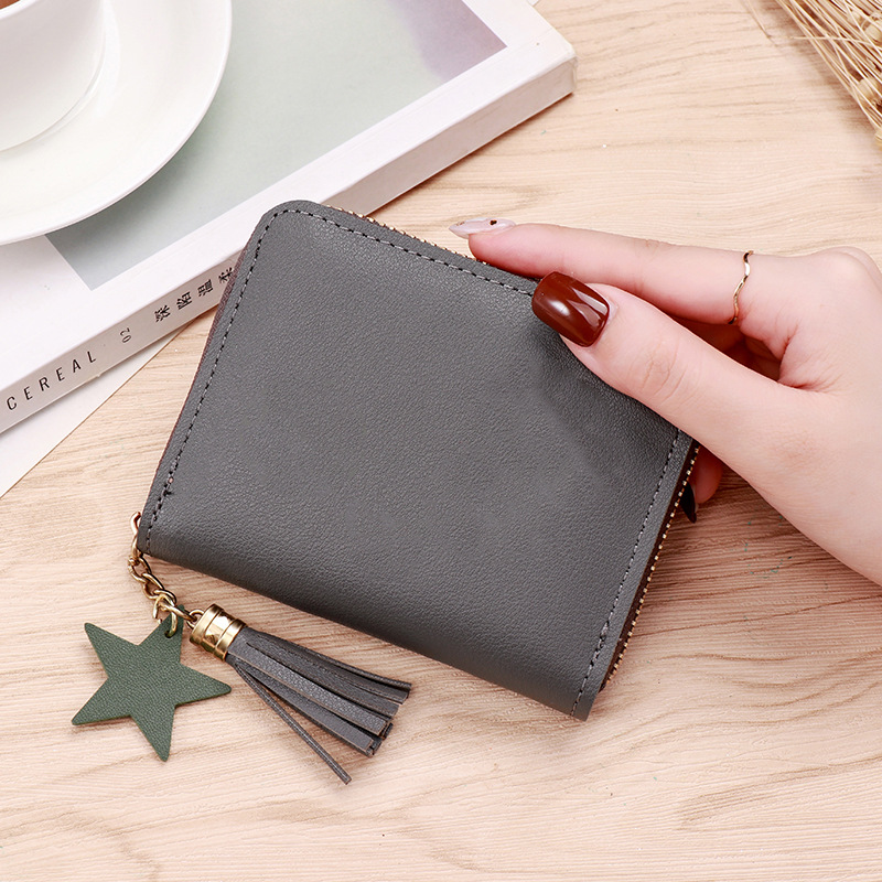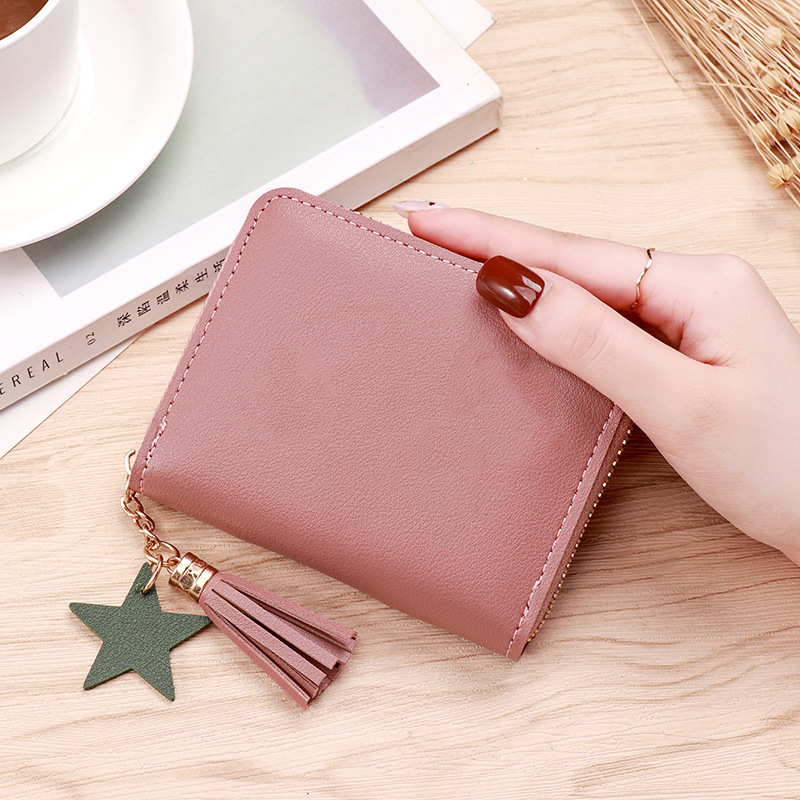 뉴 메탈 러브 쇼트 지갑 여성용 한국식 소형 신선한 스타일 다기능 트렌디 버클 3 중 심플 지갑스토어 가기