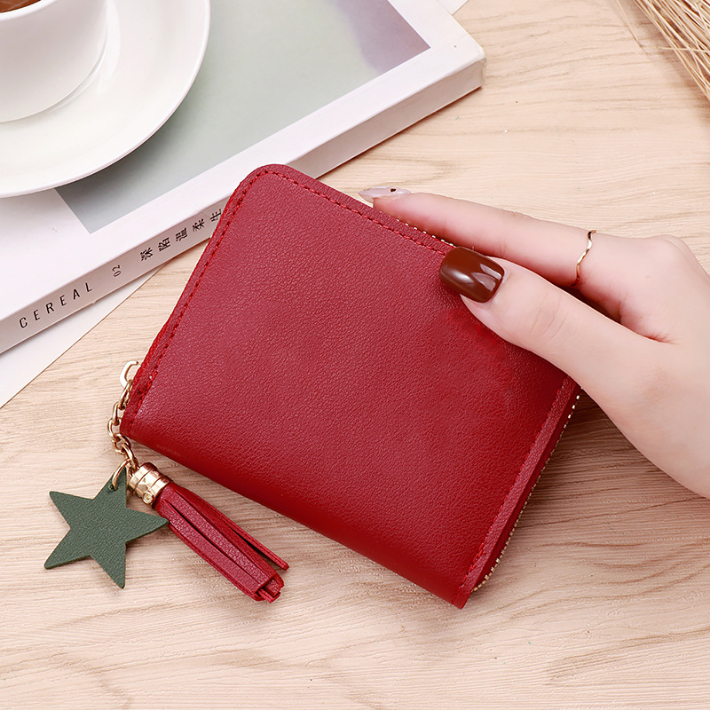 뉴 메탈 러브 쇼트 지갑 여성용 한국식 소형 신선한 스타일 다기능 트렌디 버클 3 중 심플 지갑