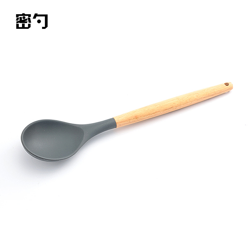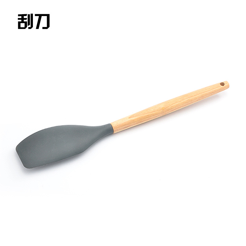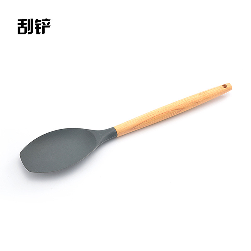 유럽 스타일 나무 손잡이 실리콘 주방 용품 8 개 세트 주방 요리 주방 용품 세트 가정용 붙지 않는 밥솥 스페이드 숟가락 도구 세트