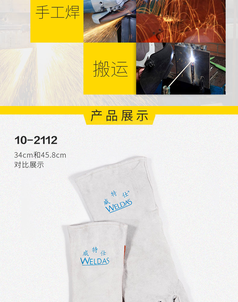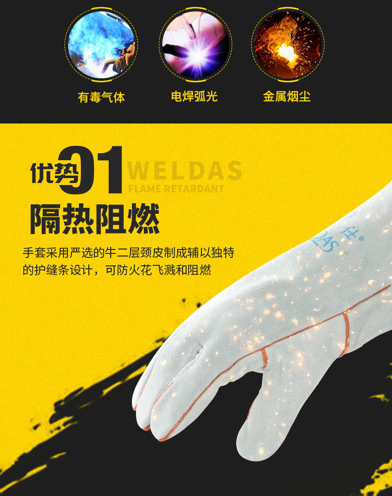 Wittes 고온 저항 장갑 10-2112 두꺼운 소가죽 연장 용접기 내마모성 내열성 고온 용접 장갑스토어 가기