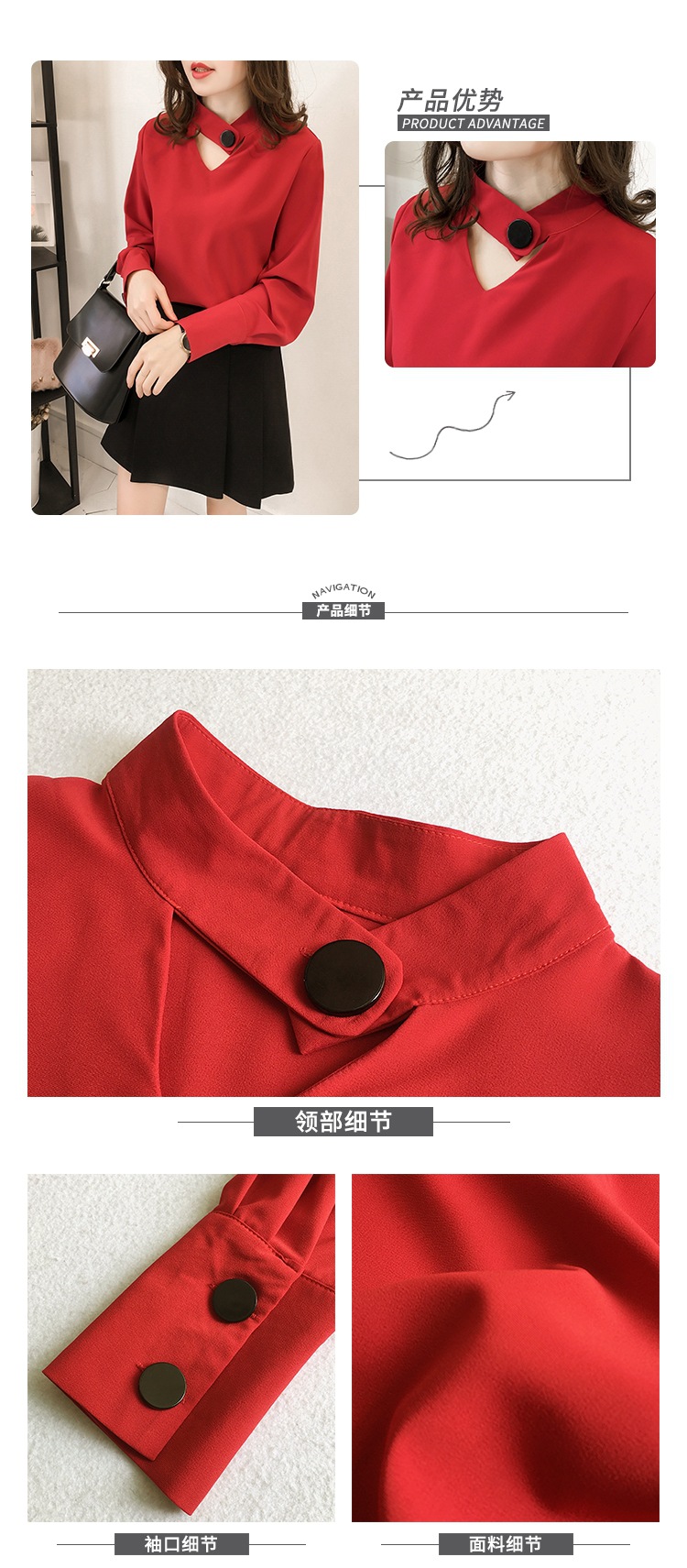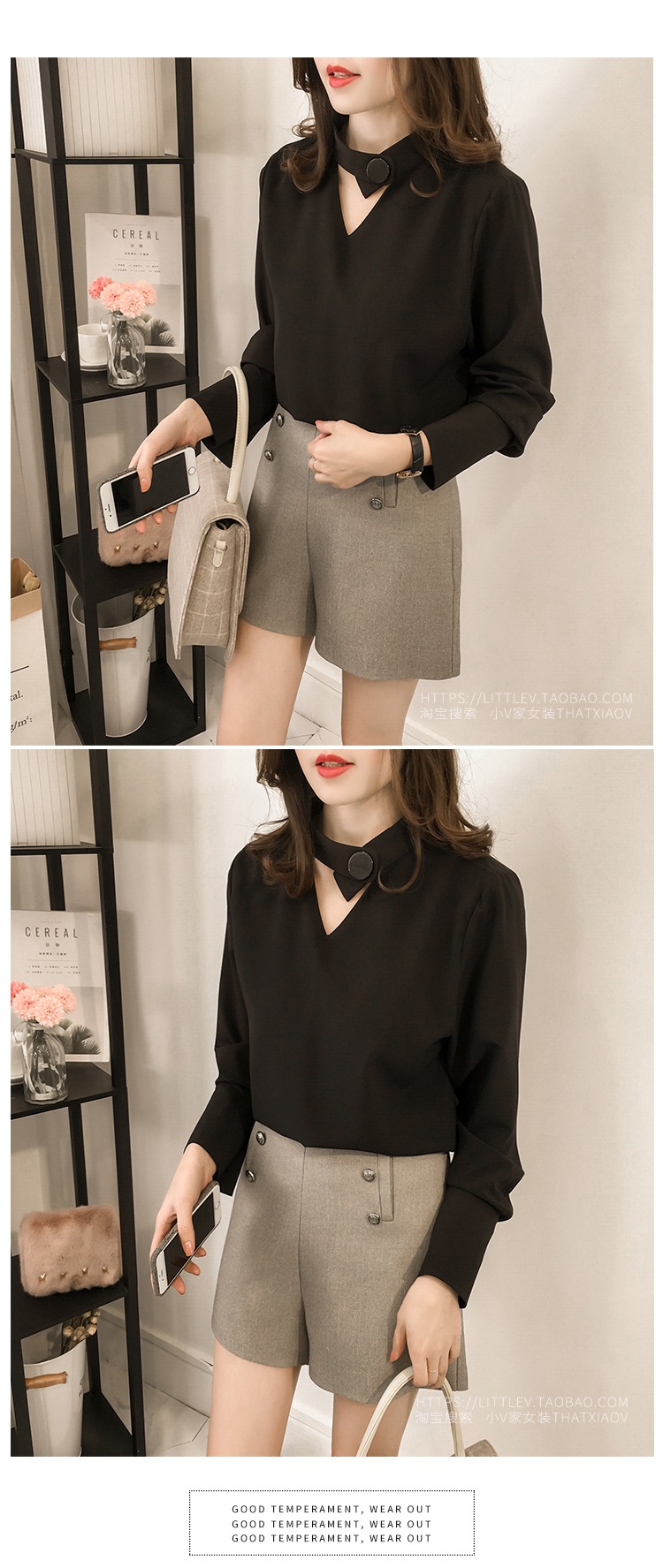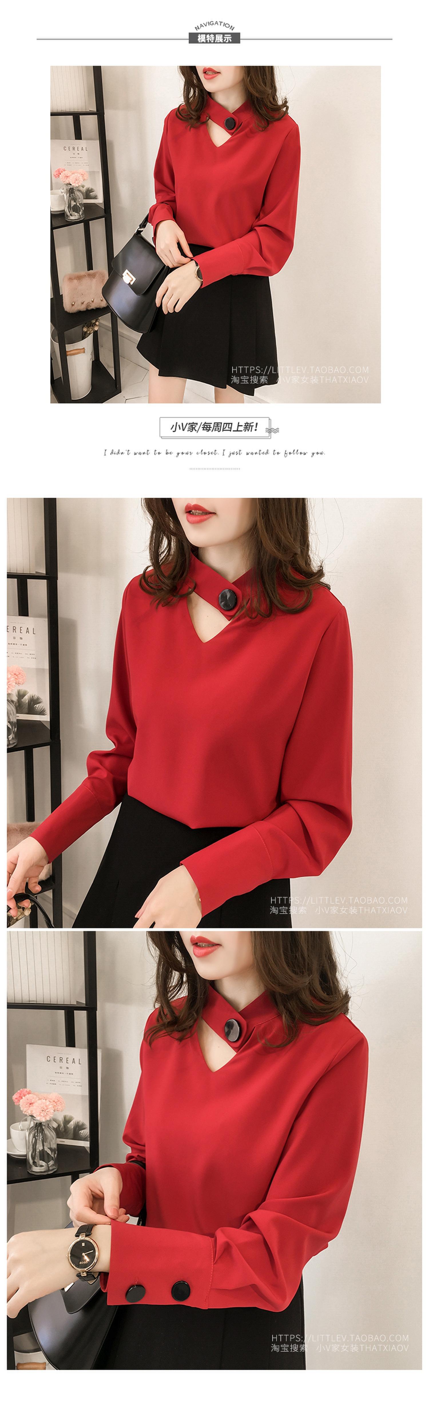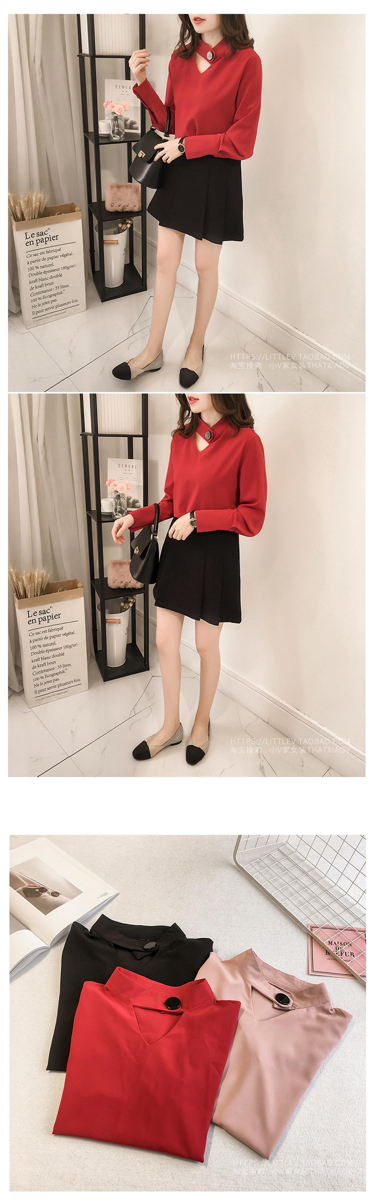 2023 한국 스타일 봄 신상품 유행 중공 목 쉬폰 셔츠 여성용 달콤한 단색 슬리밍 긴 소매 기본 셔츠스토어 가기