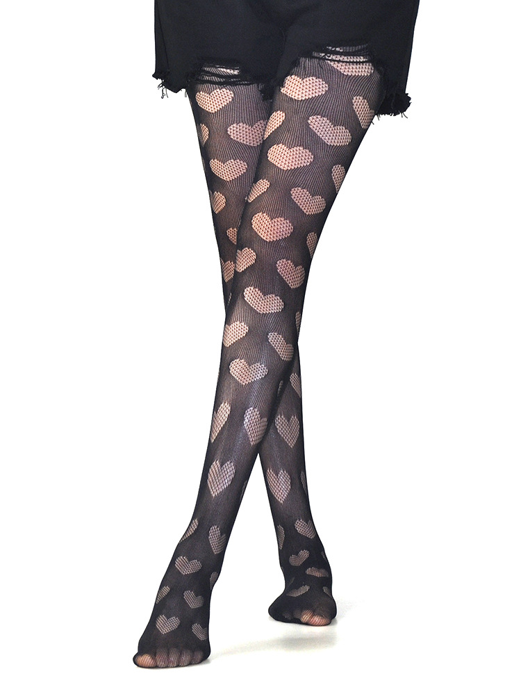 • 블랙 대형 하트 모양의 테니스 스타킹 팬티 스타킹