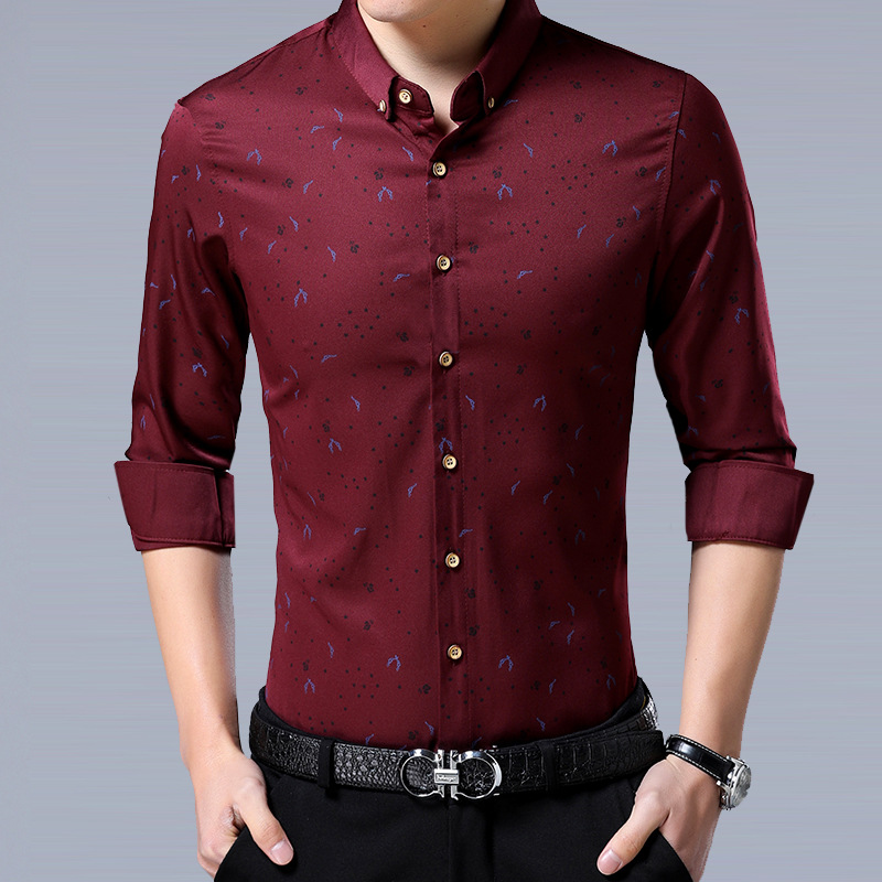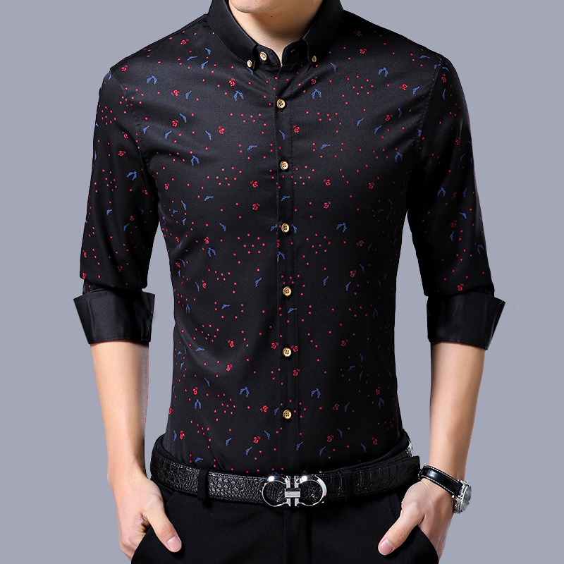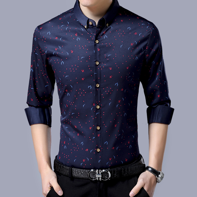꽃무늬 셔츠 남성용 라펠 프린트 비즈니스 캐주얼 얇은 스타일 트렌디 긴팔 이너 셔츠 도매 멋짐스토어 가기