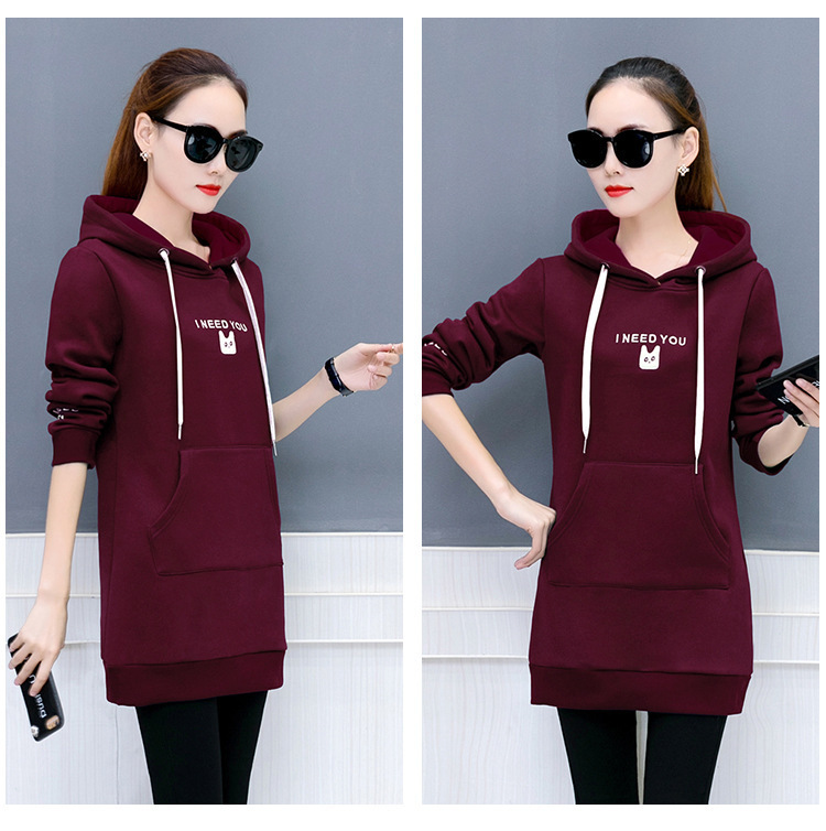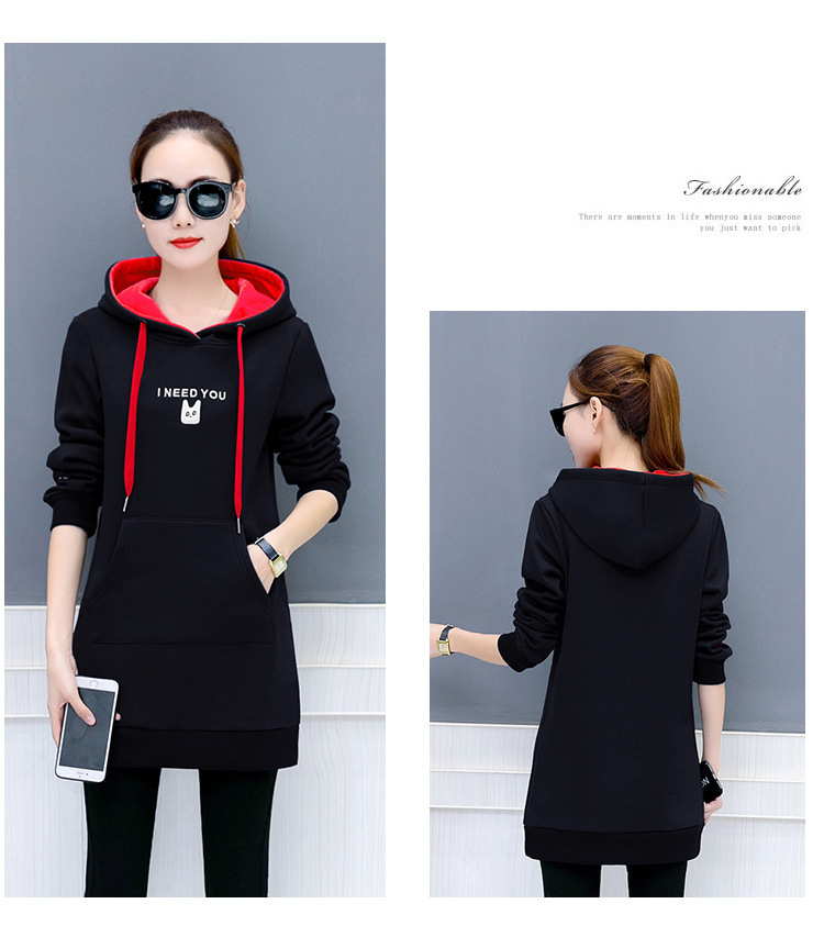 2025 가을 겨울 신상 한국 스타일 여성 풀오버 루즈핏 대형 학생용 후드 중간 길이 플러스 벨벳 자수 스웨트셔츠 여성용스토어 가기