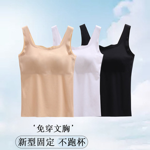 冰丝无痕内搭带胸垫背心女一体式防走光运动内衣透气美背吊带裹胸