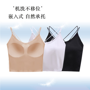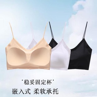新款V型美背固定杯内衣批发冰丝无痕一体式抹胸性感吊带背心女夏