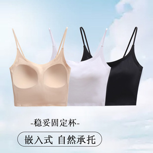 冰丝空气固定杯美背吊带背心女夏薄款无痕裹胸带胸垫一体内衣批发