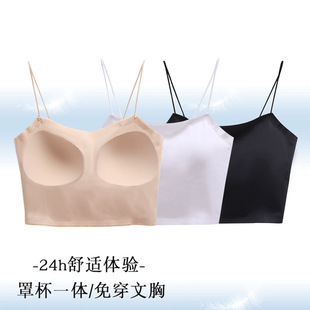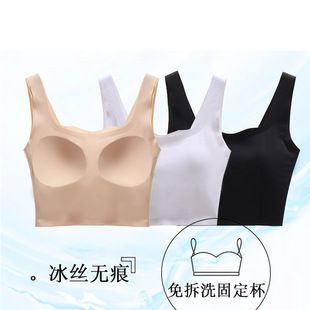 无痕固定杯美背内衣批发女士冰丝一体式抹胸夏季薄款运动吊带裹胸