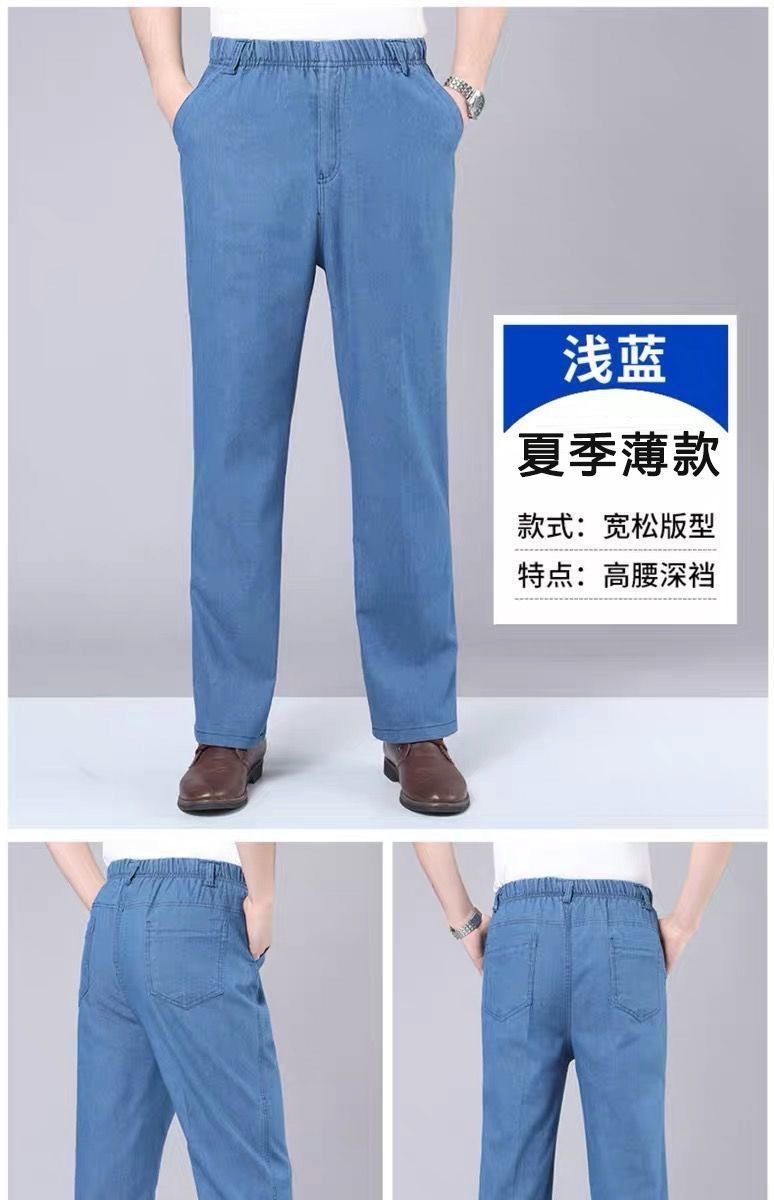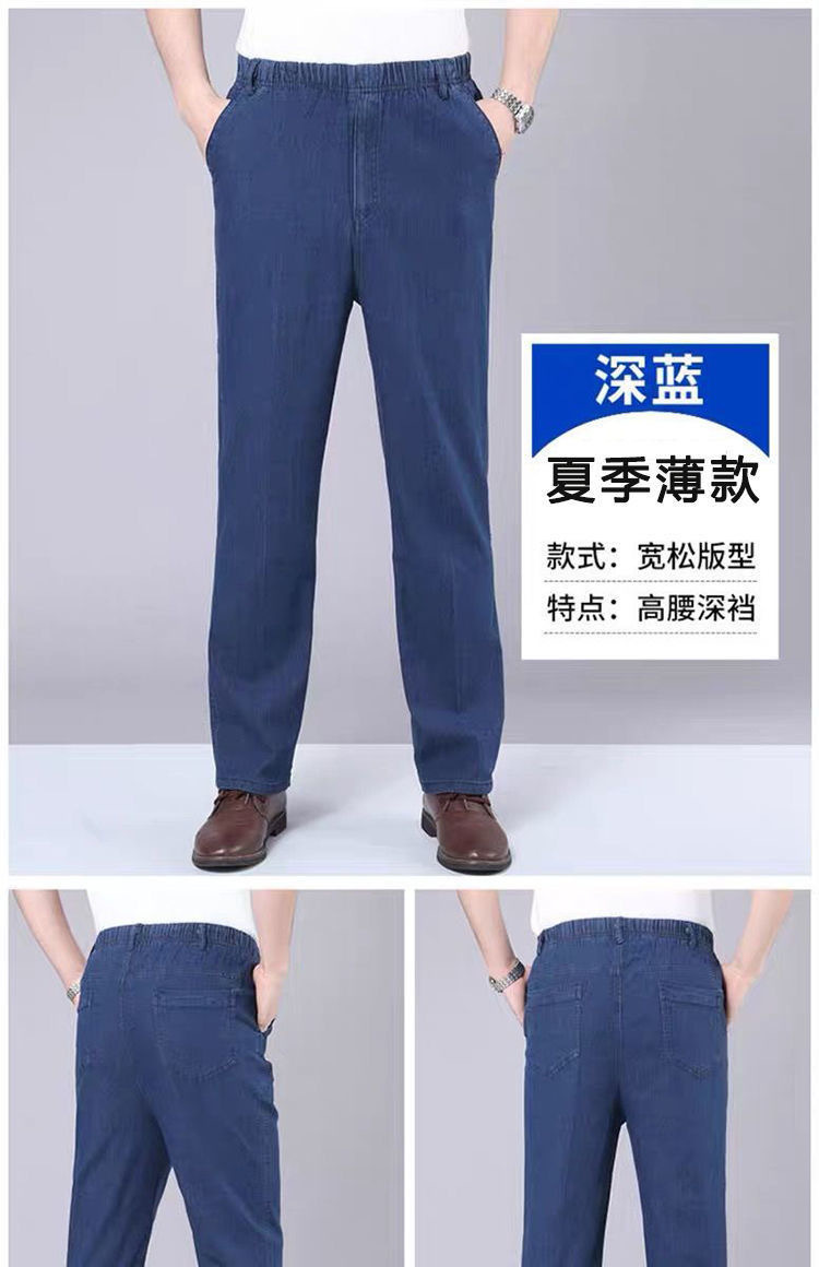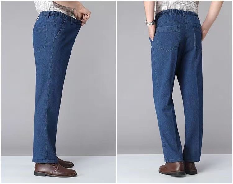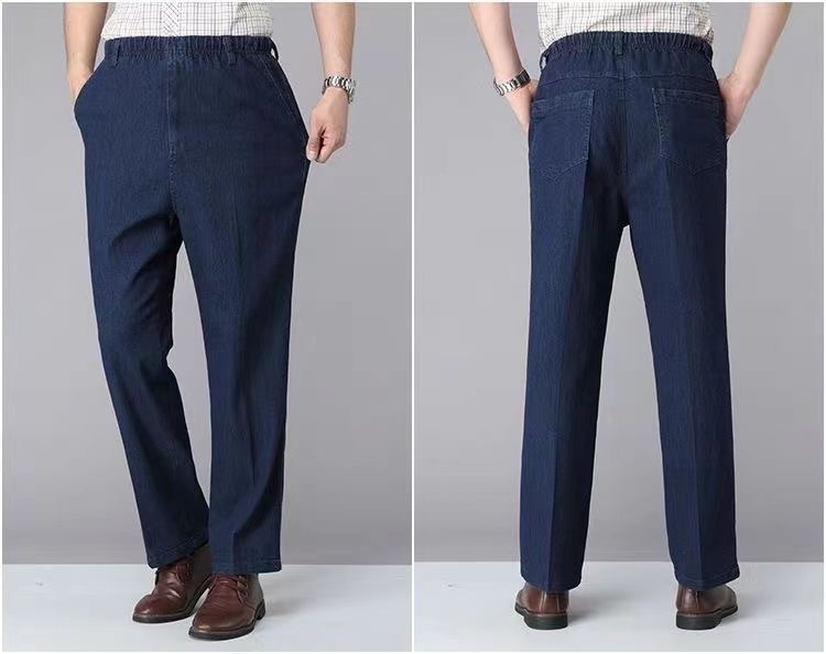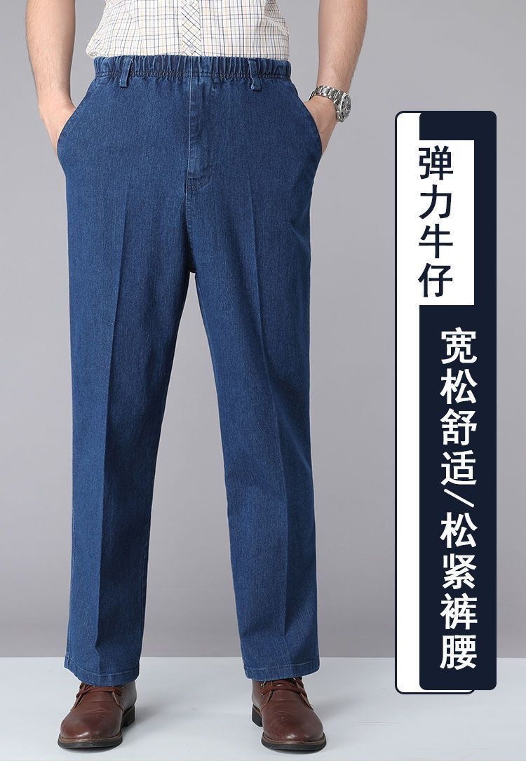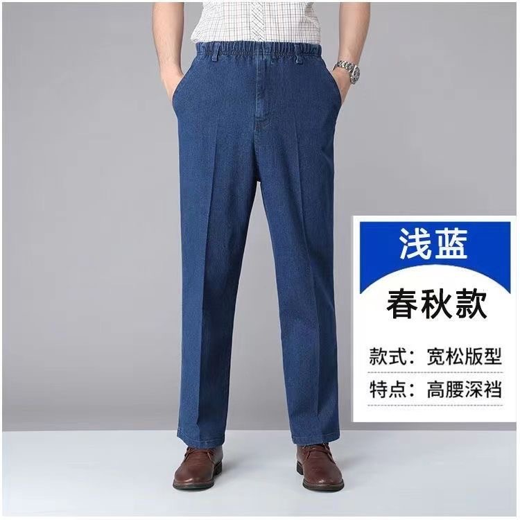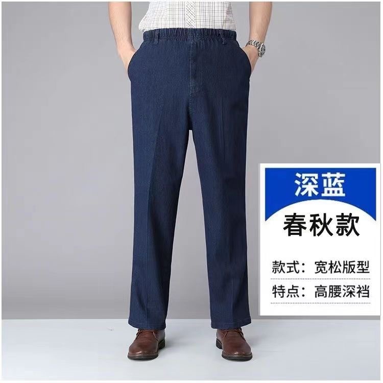 국경 간 탄성 허리 청바지 남자 스트레이트 스트레치 남자 바지 2025 새 봄과 가을 중년 남성 바지스토어 가기