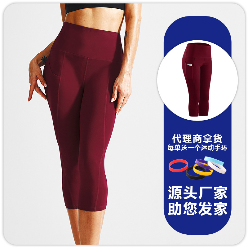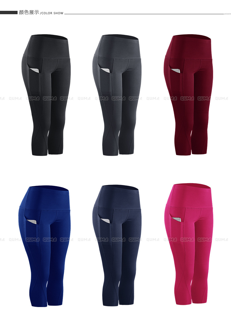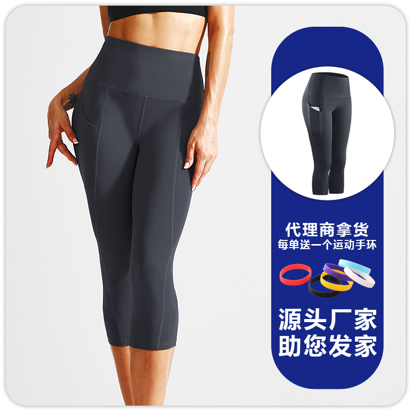 요가 바지 여성용 하이 웨이스트 엉덩이 리프팅 탄성 여름 알몸 카프리 바지 속건 통기성 겉옷 러닝 타이트 스포츠 바지
