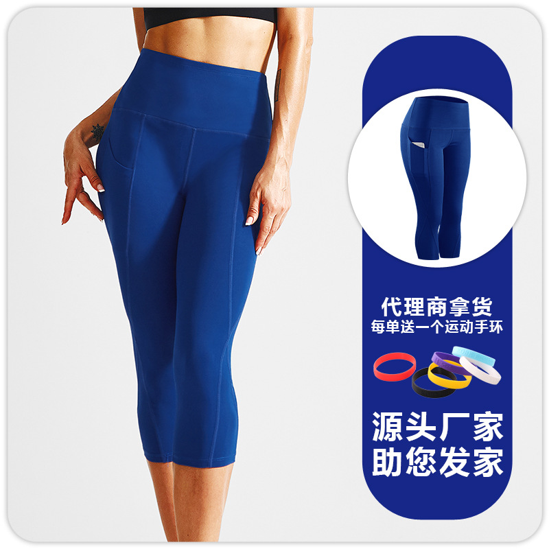 요가 바지 여성용 하이 웨이스트 엉덩이 리프팅 탄성 여름 알몸 카프리 바지 속건 통기성 겉옷 러닝 타이트 스포츠 바지스토어 가기
