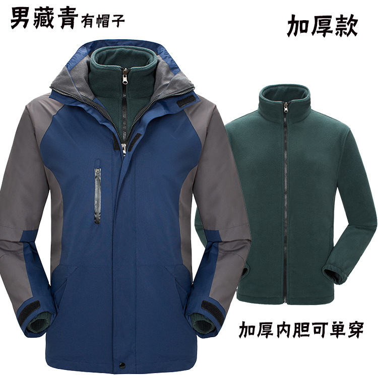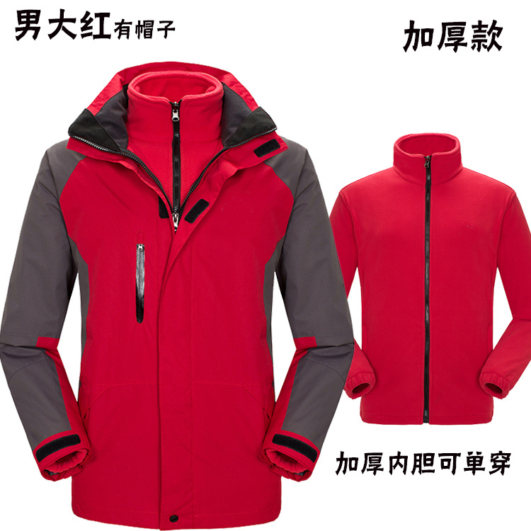 새로운 야외 작업복 가을 겨울 투피스 재킷 남녀공용 두꺼운 3-in-1 탈부착 가능한 등산복스토어 가기