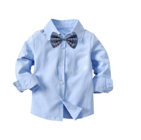 나비 넥타이가 달린 단색 긴 소매 셔츠 INS 새 소년 셔츠 가을과 겨울 바닥 셔츠 유럽과 미국 아동복 도매스토어 가기