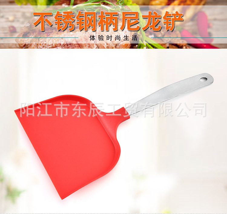 공장 도매 다목적 스테인레스 스틸 핸들 나일론 삽 주걱 피자 삽 스테이크 삽 주방 도구 팬케이크 삽스토어 가기