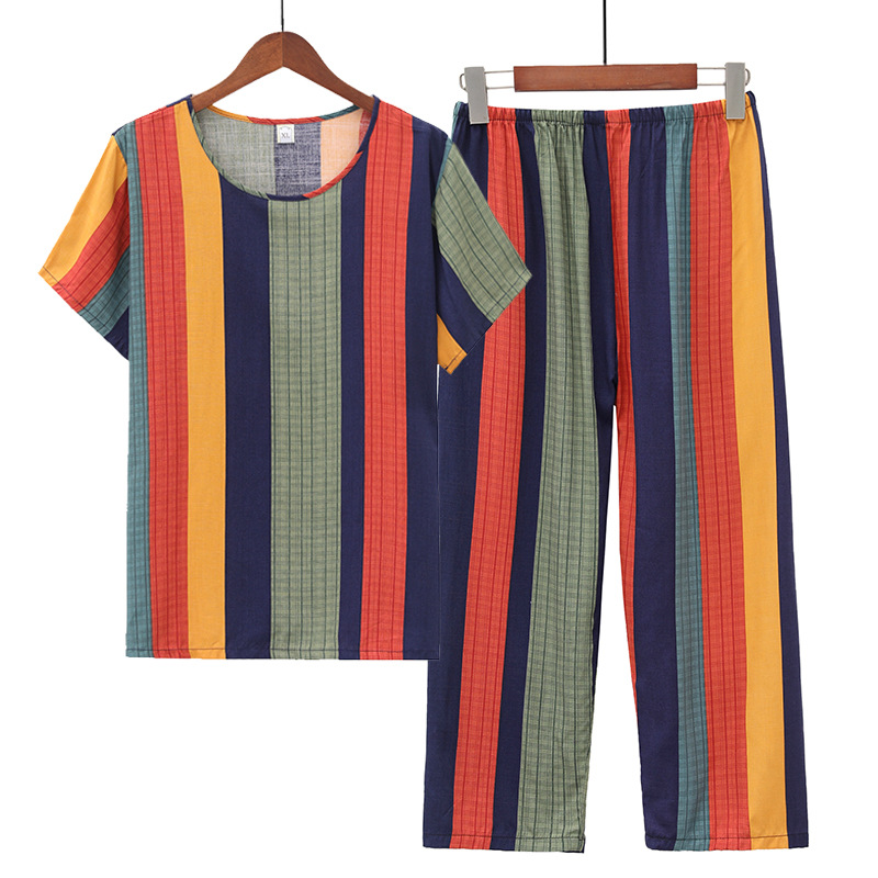 여성용 여름 얇은 면 실크 잠옷 반팔 투피스 세트 인조 면 중년 엄마 홈웨어 여름 캐주얼 편안함