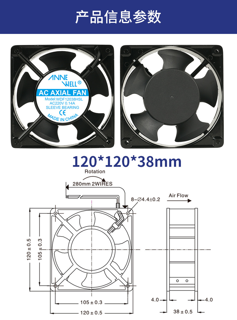 12038 냉각 팬 110V220V380V 전력 증폭기 섀시 산업용 캐비닛 냉동고 용접기 축 방향 유량 팬