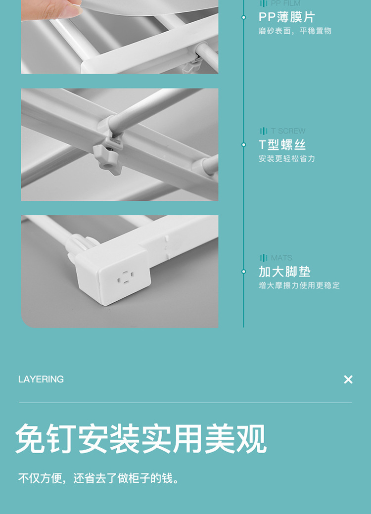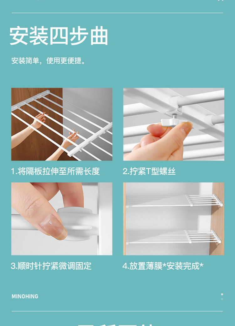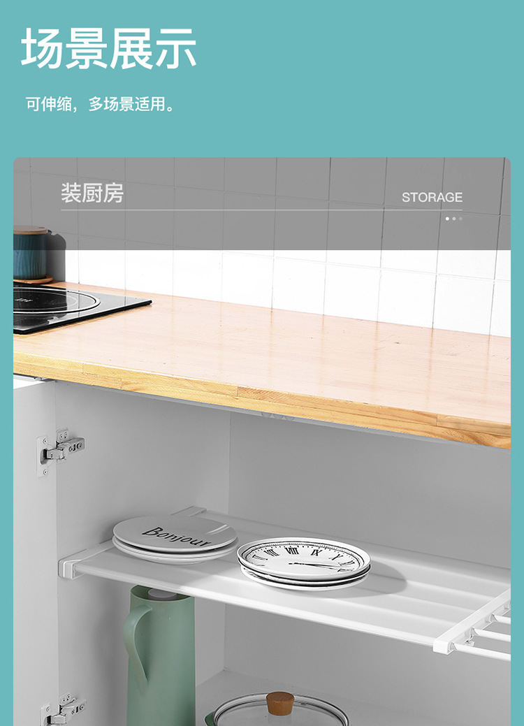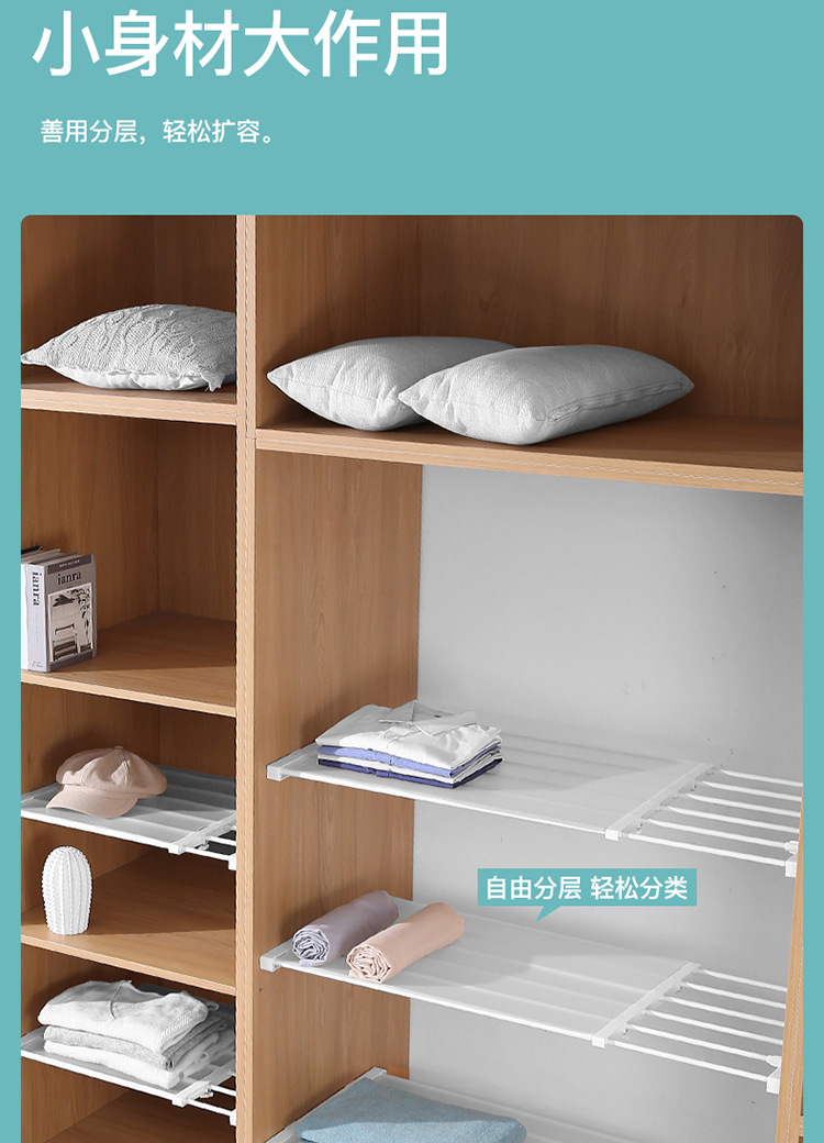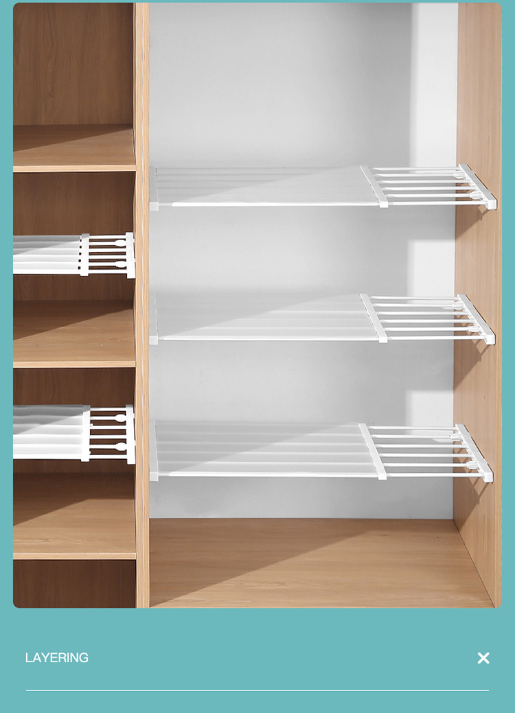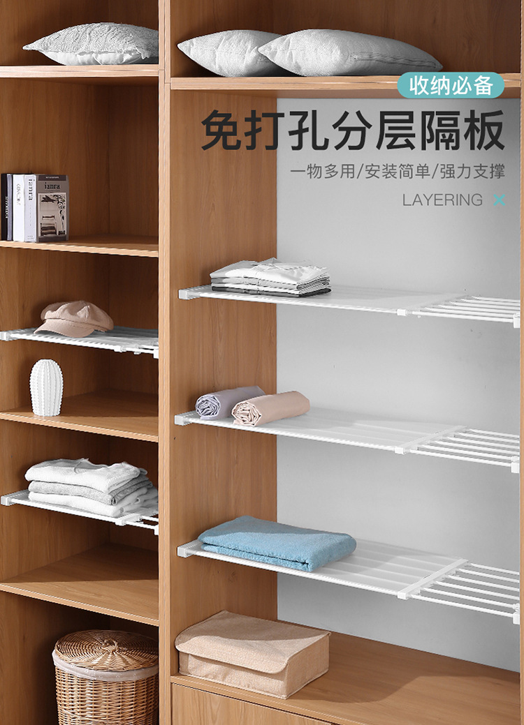 옷장 보관 계층화 파티션 캐비닛 내부 파티션 네일 프리 텔레스코픽 계층화 파티션 재사용 가능한 스토리지 랙 욕실