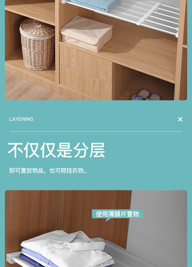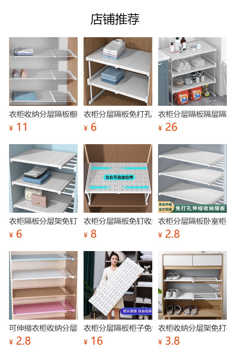 옷장 보관 계층화 파티션 캐비닛 내부 파티션 네일 프리 텔레스코픽 계층화 파티션 재사용 가능한 스토리지 랙 욕실스토어 가기