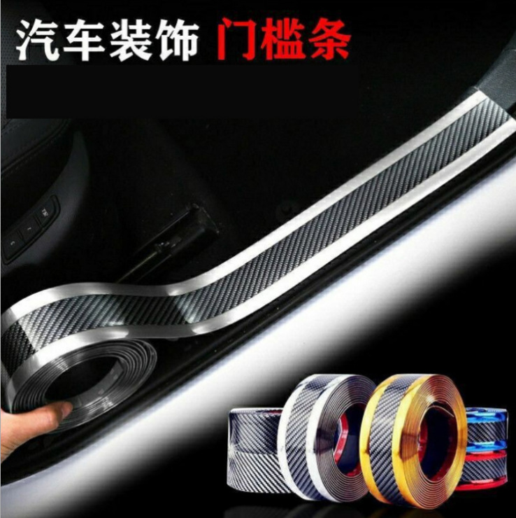 자동차 창틀 스트립 용 스테핑 방지 스티커 범용 수정 페달 트림 스트립 탄소 섬유 곡물 범퍼 도어 에지 충돌 방지 스티커