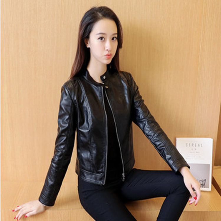 봄 가을 여성용 숏 가죽 자켓, PU 가죽 숏 코트, 스탠드 칼라, 슬림핏, 다용도 패션 자켓스토어 가기