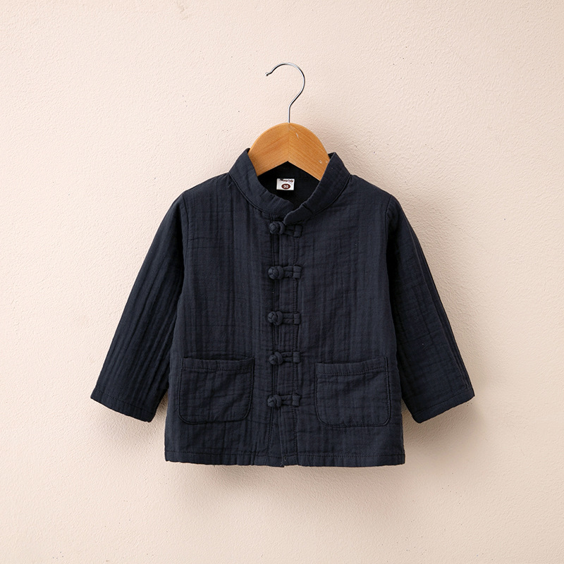 소년과 소녀 복고풍 당나라 세트 중국 스타일 최고 봄과 가을 민족 스타일 어린이 중립 단색 셔츠 중국 스타일 긴 소매 셔츠스토어 가기