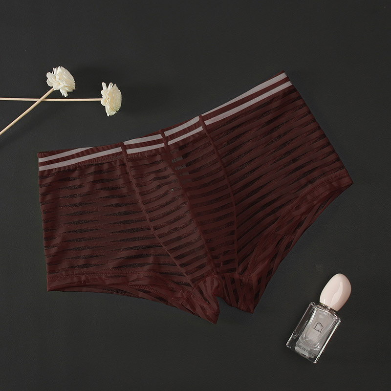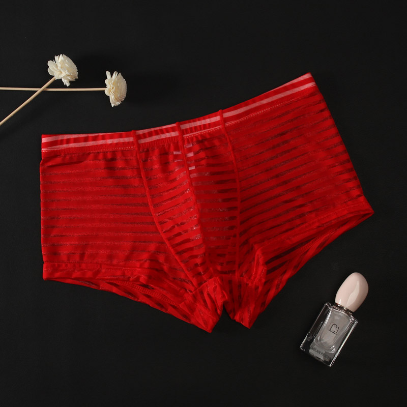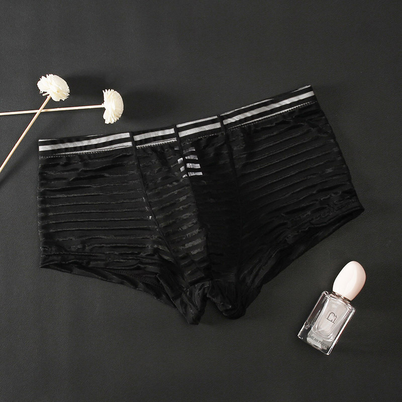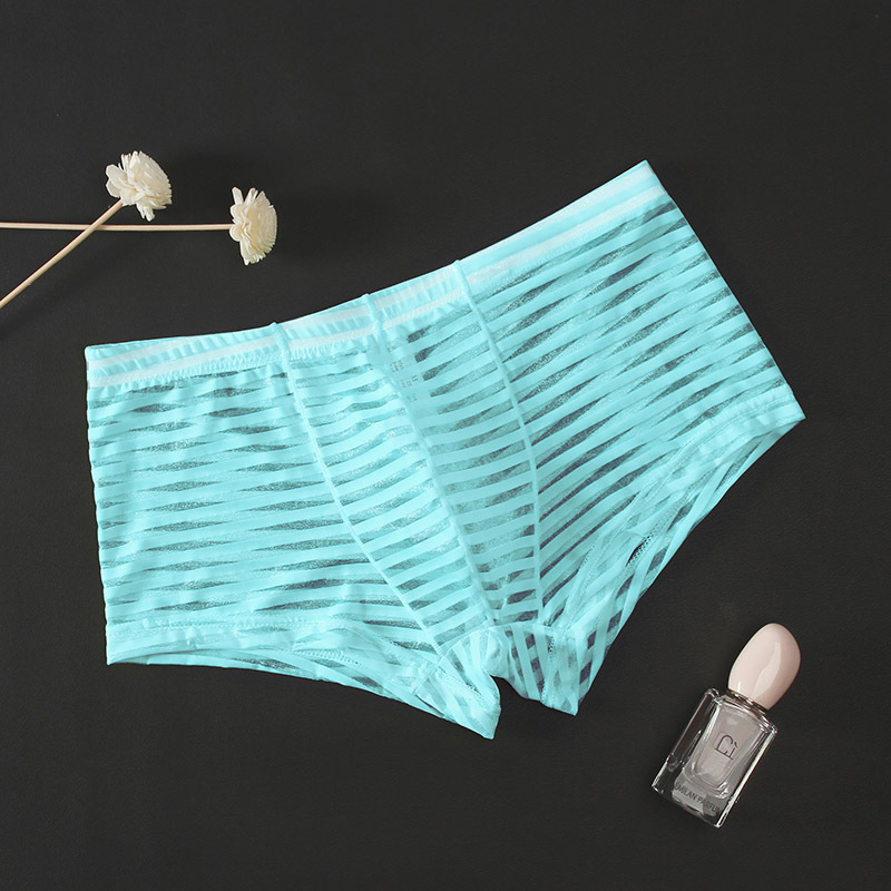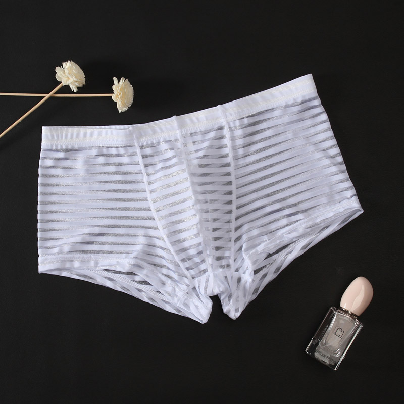 Junyi 남자의 메쉬 투명 복서 낮은 허리 얇은 섹시 통기성 속옷 여름 유행 남자의 청소년 4 코너 바지
