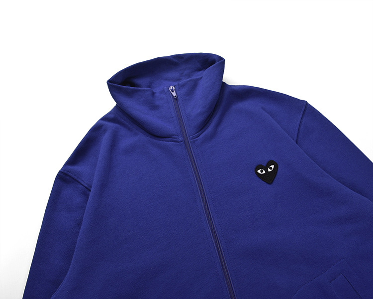 HEYPLAY 일본 패션 브랜드 18 레드 하트 자켓 블루 지퍼 백 빅 블랙 하트 수직 칼라 스웨트 셔츠