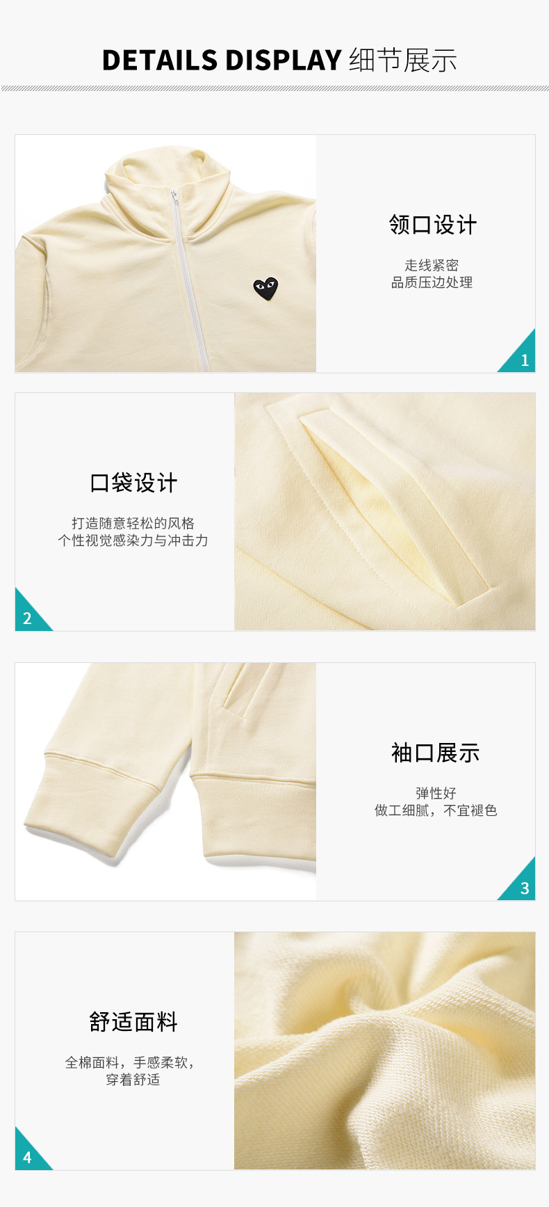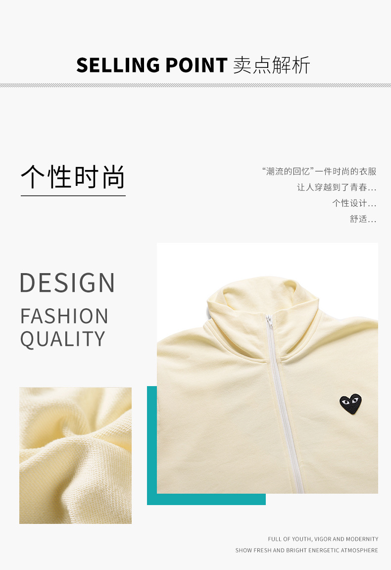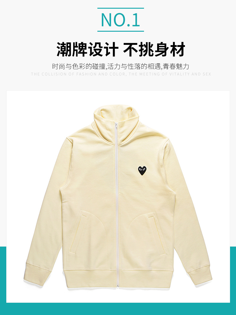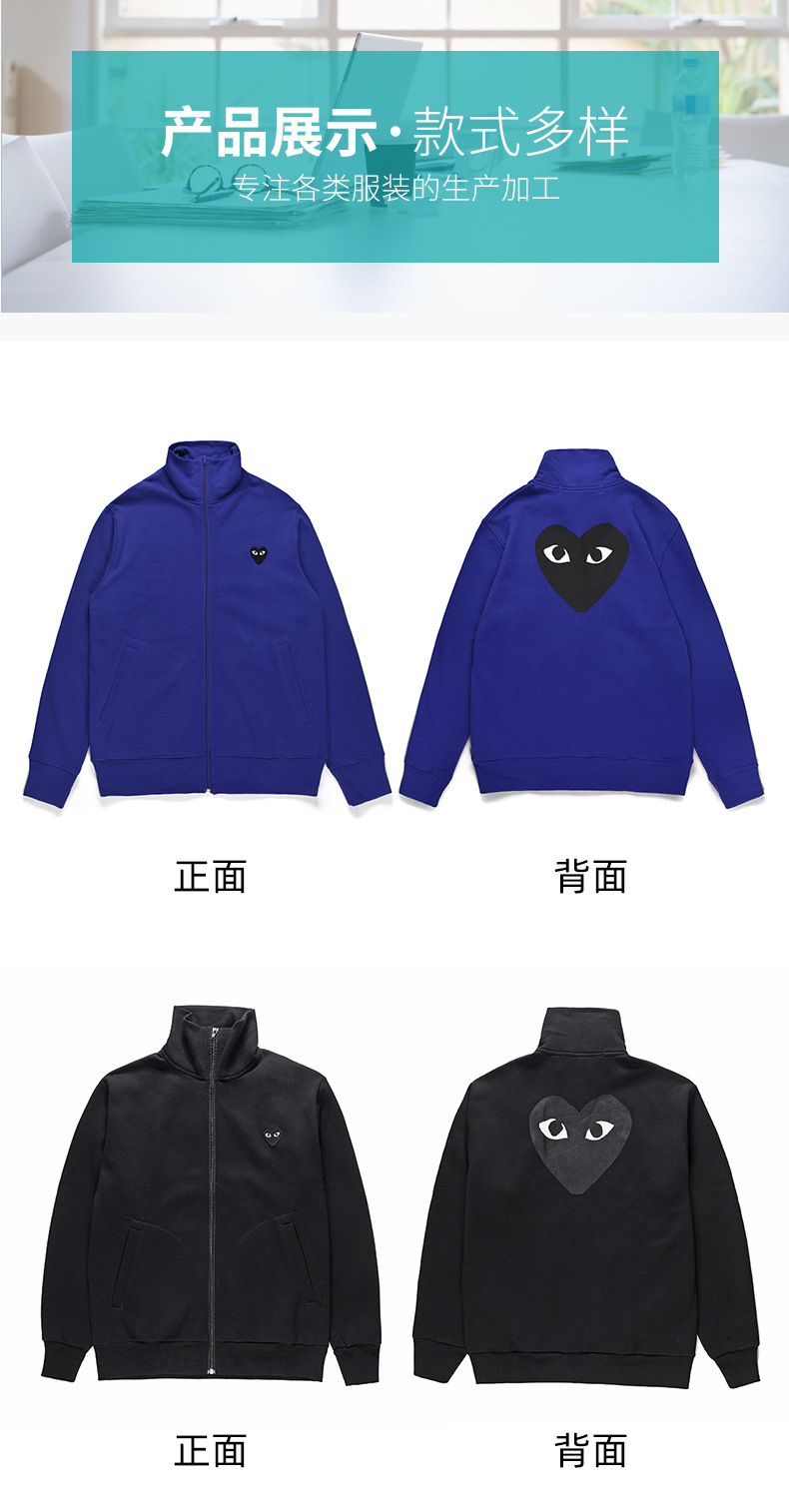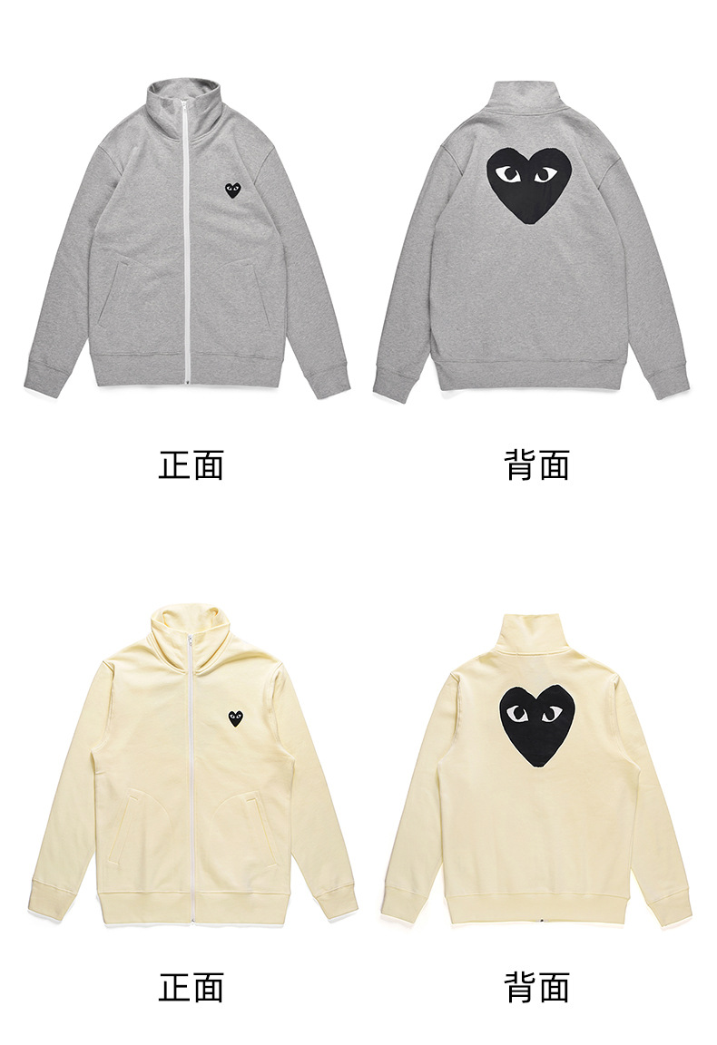 HEYPLAY 일본 패션 브랜드 18 레드 하트 자켓 블루 지퍼 백 빅 블랙 하트 수직 칼라 스웨트 셔츠스토어 가기