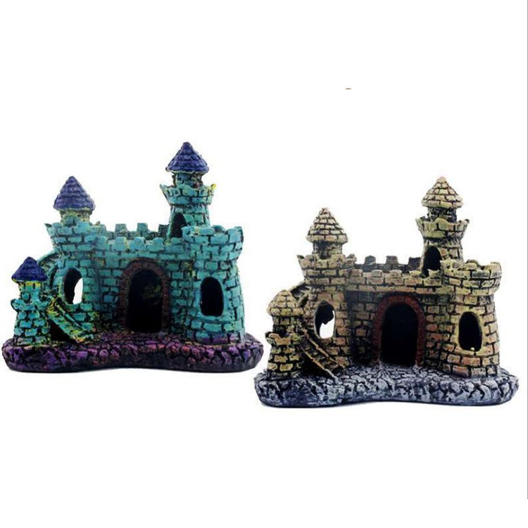 수족관 어항 풍경 장식 수지 골동품 로마 작은 성 유럽 빌라 하우스 물고기 대피소
