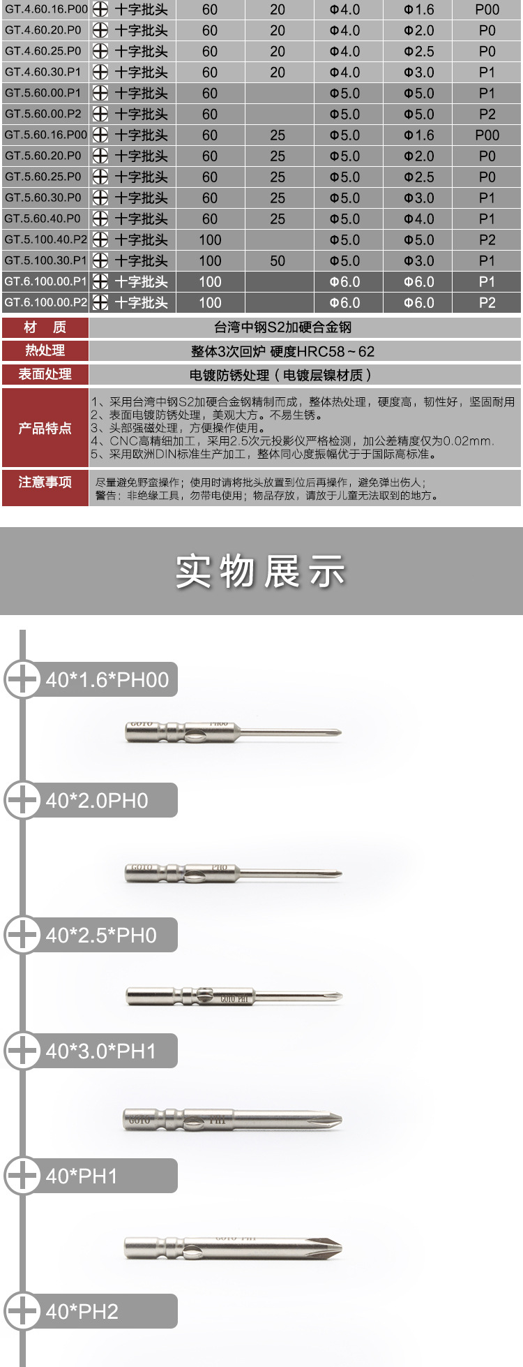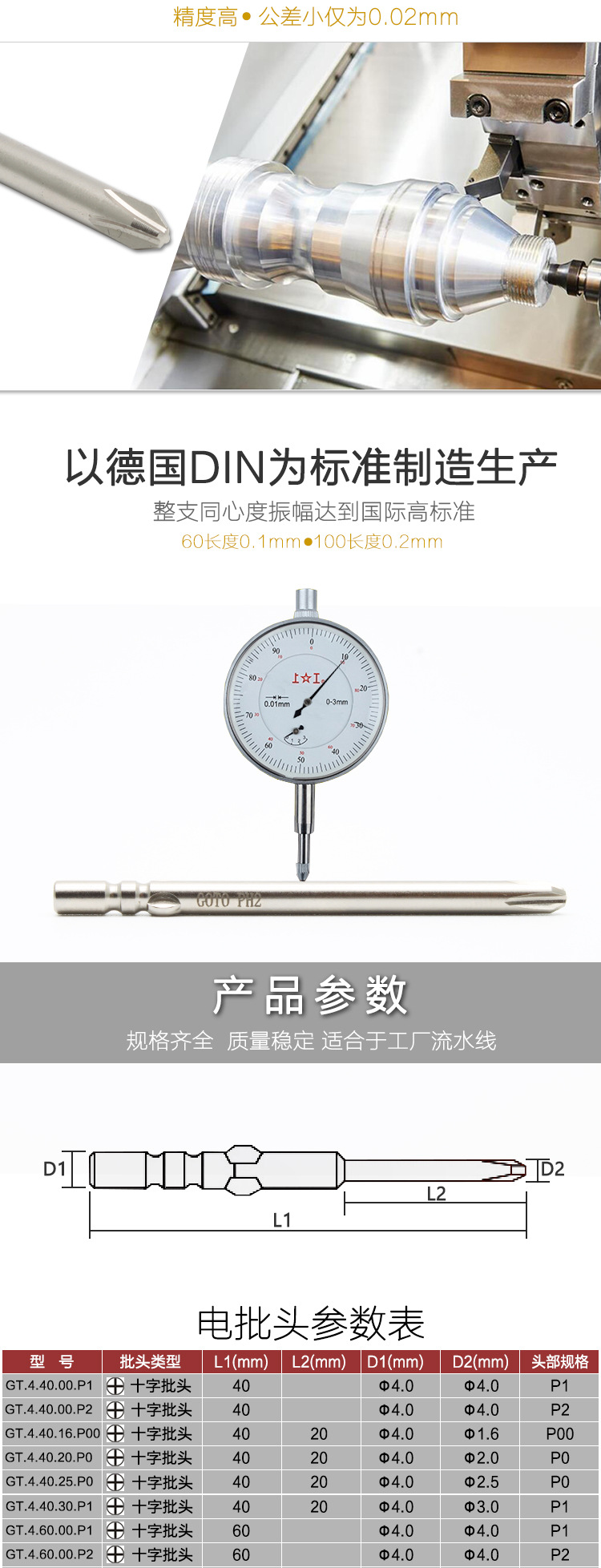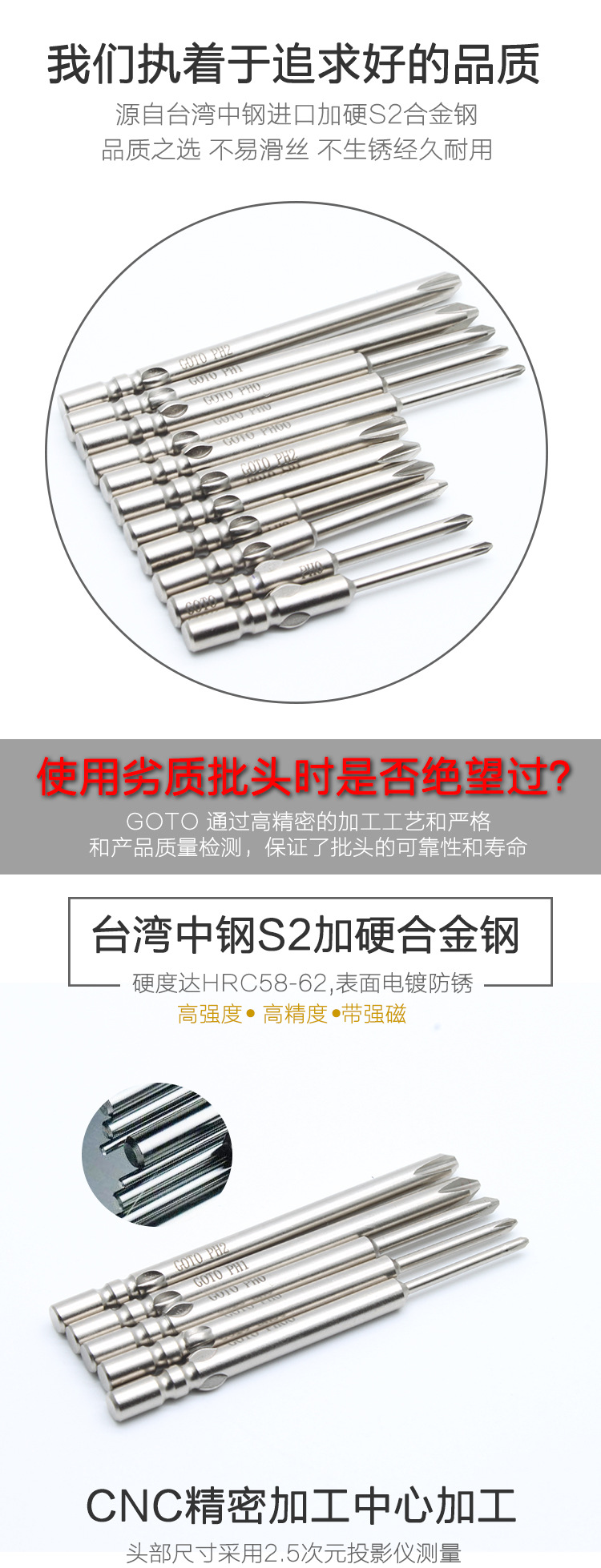 공장 직접 공급 GOTO800 4cm S2 경화 십자 드라이버 전기 비트 헤드 전기 비트 팁 자기 전기 드라이버