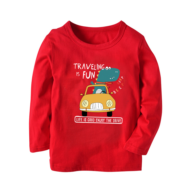18 가을 새로운 공룡 자동차 그룹 긴팔 소년 티셔츠 유럽과 미국 아동복 멀티 컬러 옵션 가을 겨울 기본 셔츠