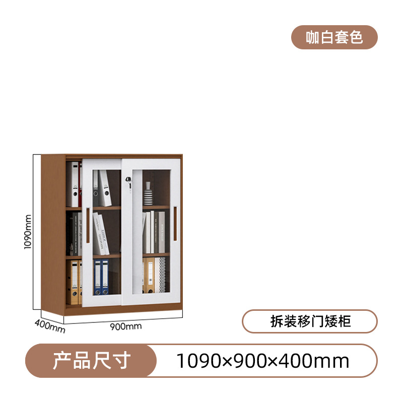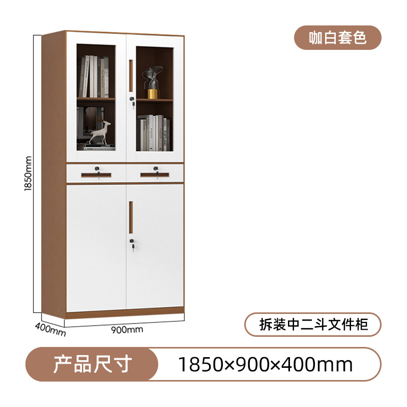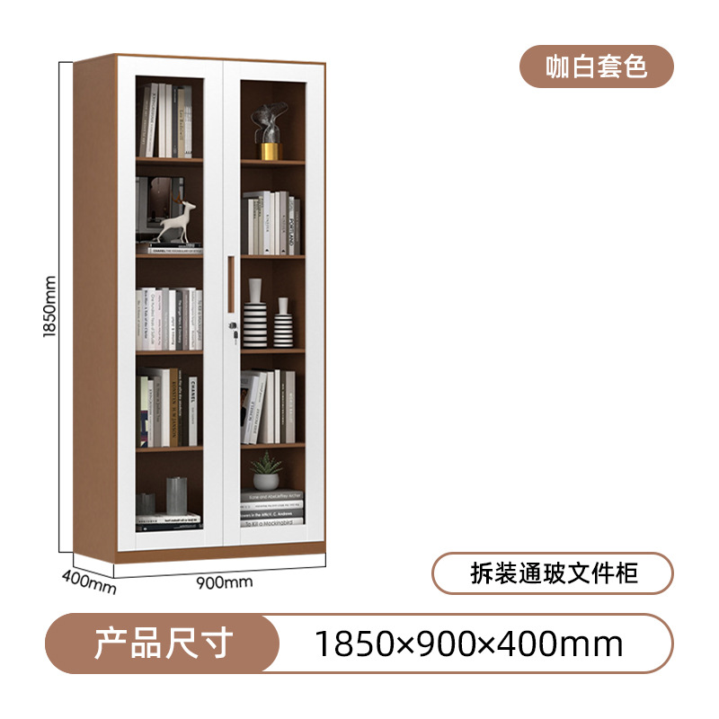 • 투명 유리 서류 캐비닛 - 커피/화이트 배색