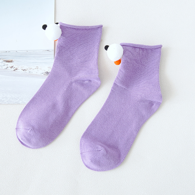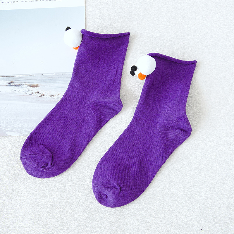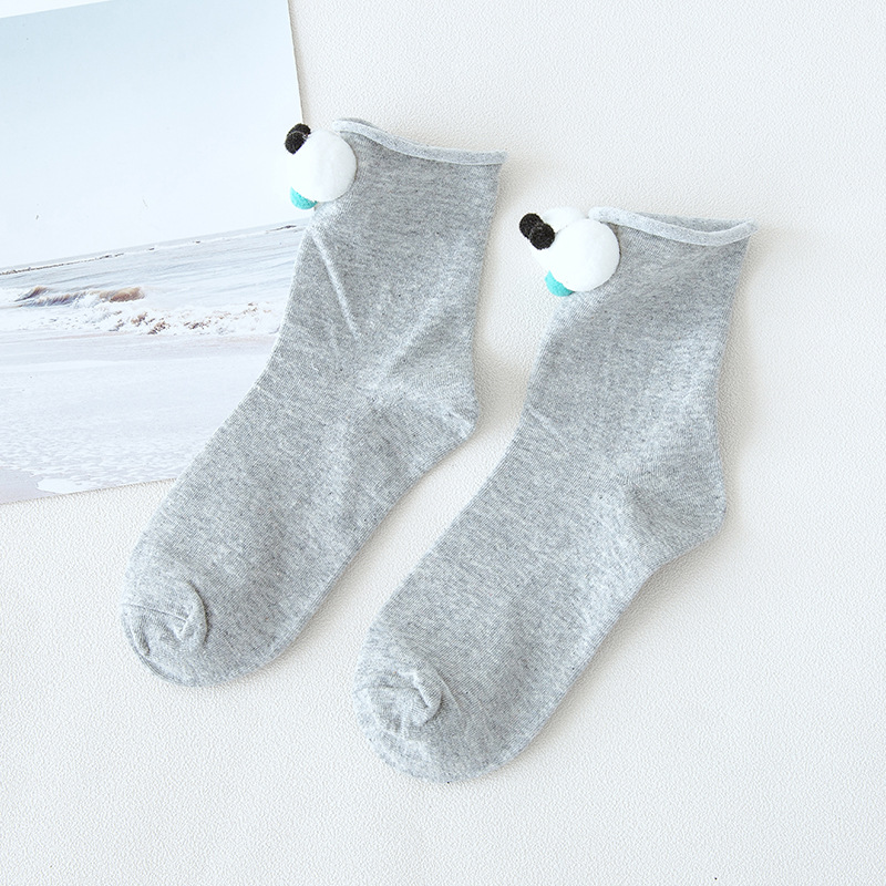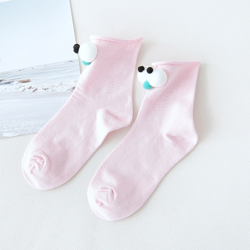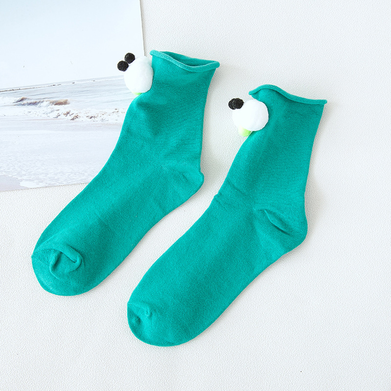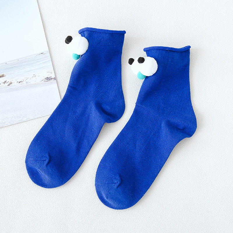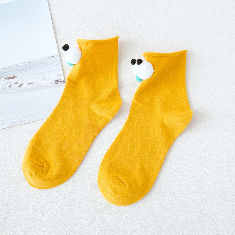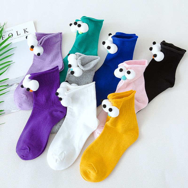 抖音同款可爱卡通创意大眼睛女袜 糖果色卷边棉短袜