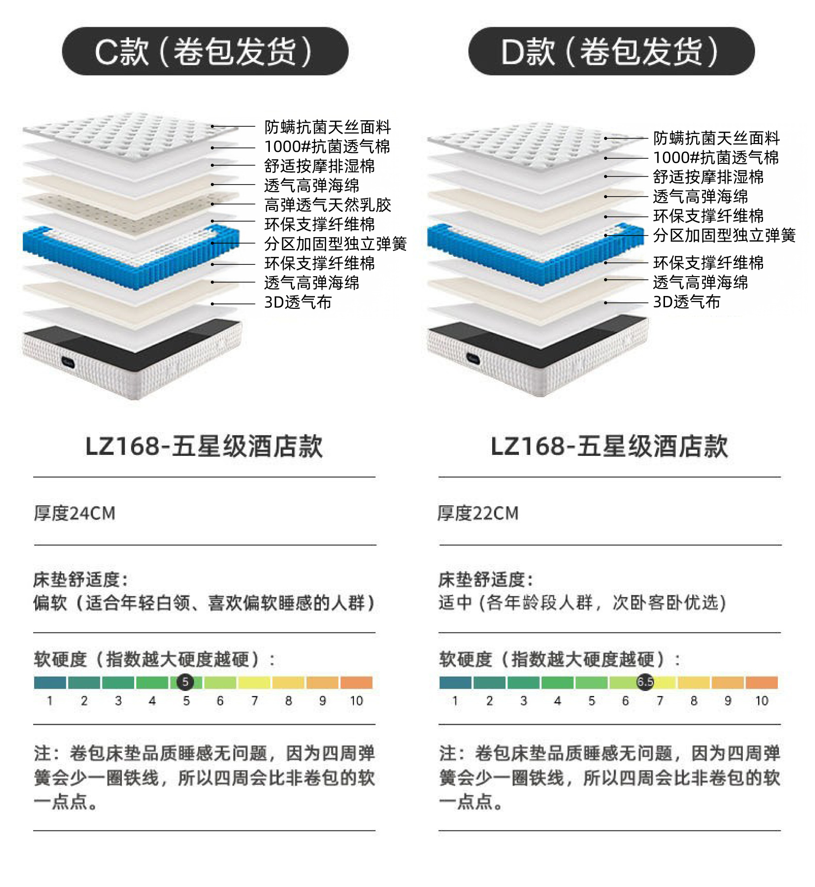 • C는 조금 더 부드럽습니다/독립백 + 천연라텍스(롤백)