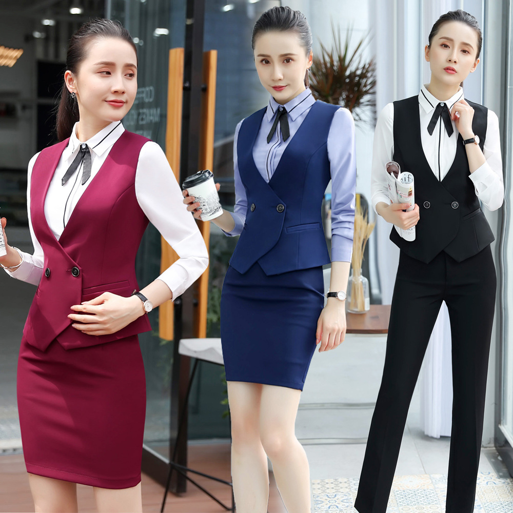 비즈니스웨어 조끼 여성용 세트 뷰티 살롱 쥬얼리 ktv 호텔 프런트 데스크 계산원 웨이터 긴 소매 작업복스토어 가기