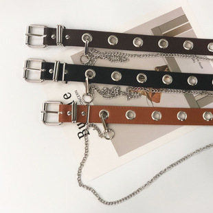 新款皮带女简约百搭女士腰带链条铆钉个性潮流时尚皮带厂家批发