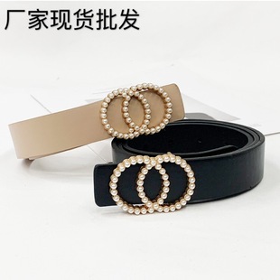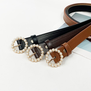 厂家直销韩版女士圆扣珍珠针扣腰带女甜美百搭装饰学生青年裤皮带