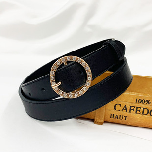 新款女士装饰皮带女款圆扣镶水钻针扣腰带韩版简约牛仔裤带厂家