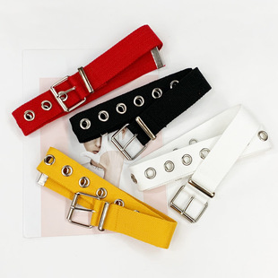 新款帆布腰带女镂空圆圈气眼皮带女时尚潮流百搭装饰学生裤带批发