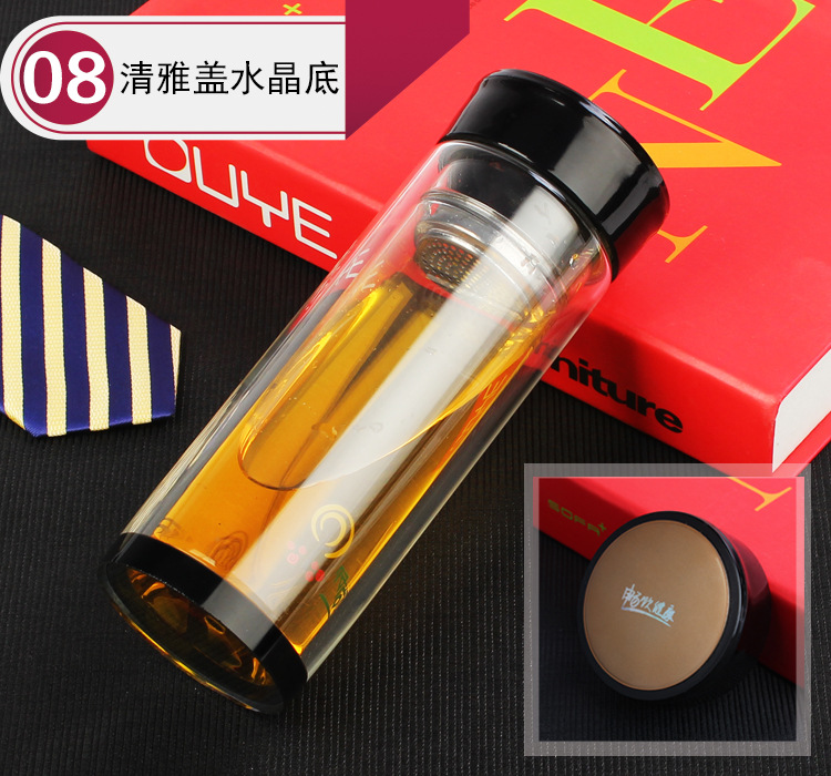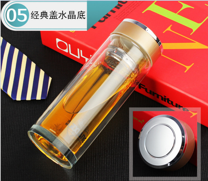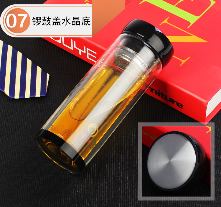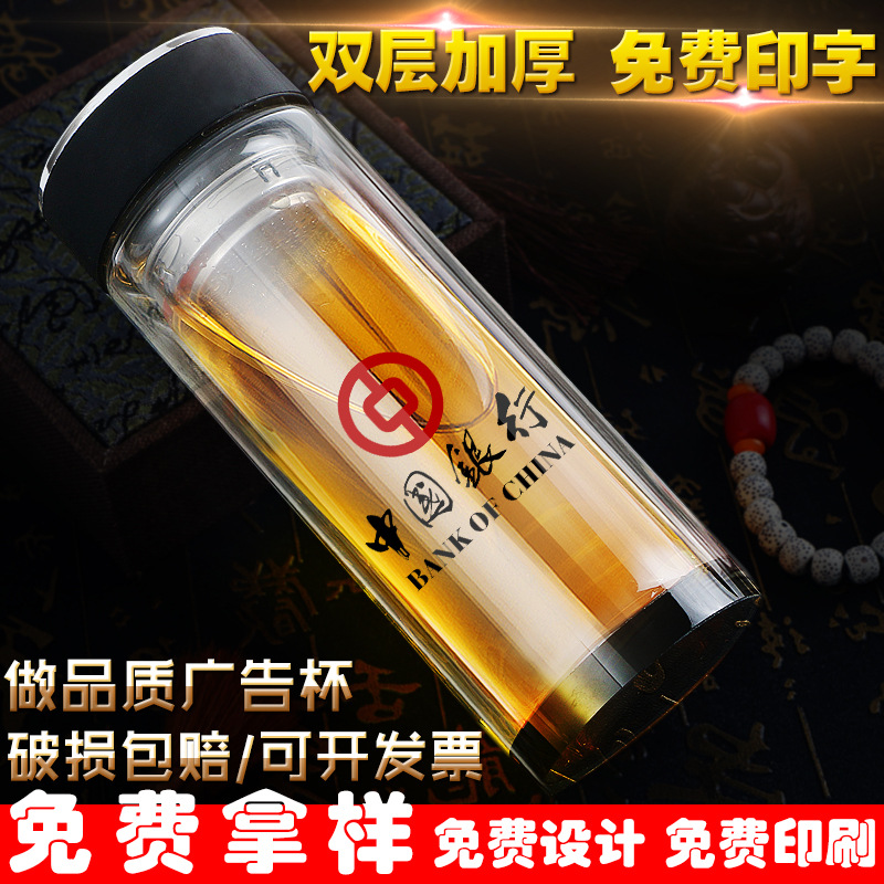 공장 직접 이중층 두꺼운 크리스탈 바닥 유리 단열 컵 단열 컵 광고 선물 컵 로고 인쇄 가능