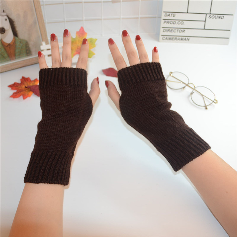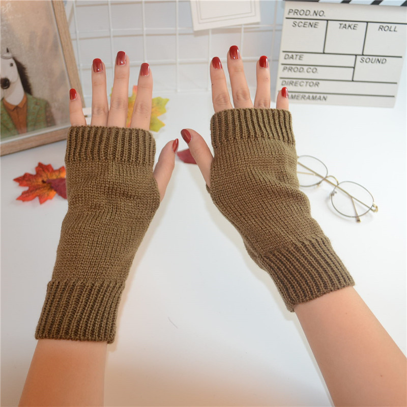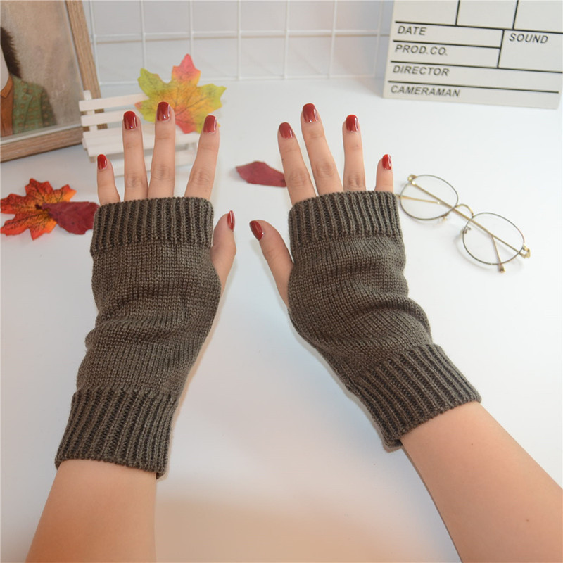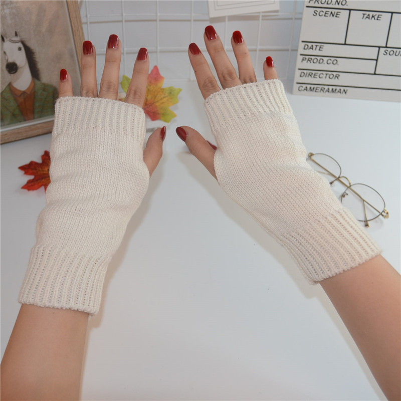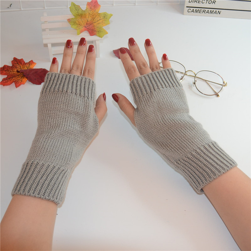 Yifan 가을과 겨울 학생 쓰기 따뜻한 한국어 짧은 빛 플레이트 단색 손가락 커플 니트 여자 반 손가락 장갑스토어 가기