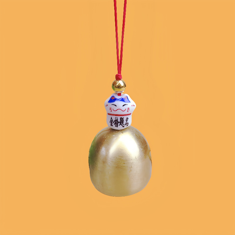 제조 업체 도매 귀여운 세라믹 행운의 고양이 진짜 구리 작은 풍경 펜던트 금속 크리스마스 도어 벨 도난 방지 벨 펜던트
