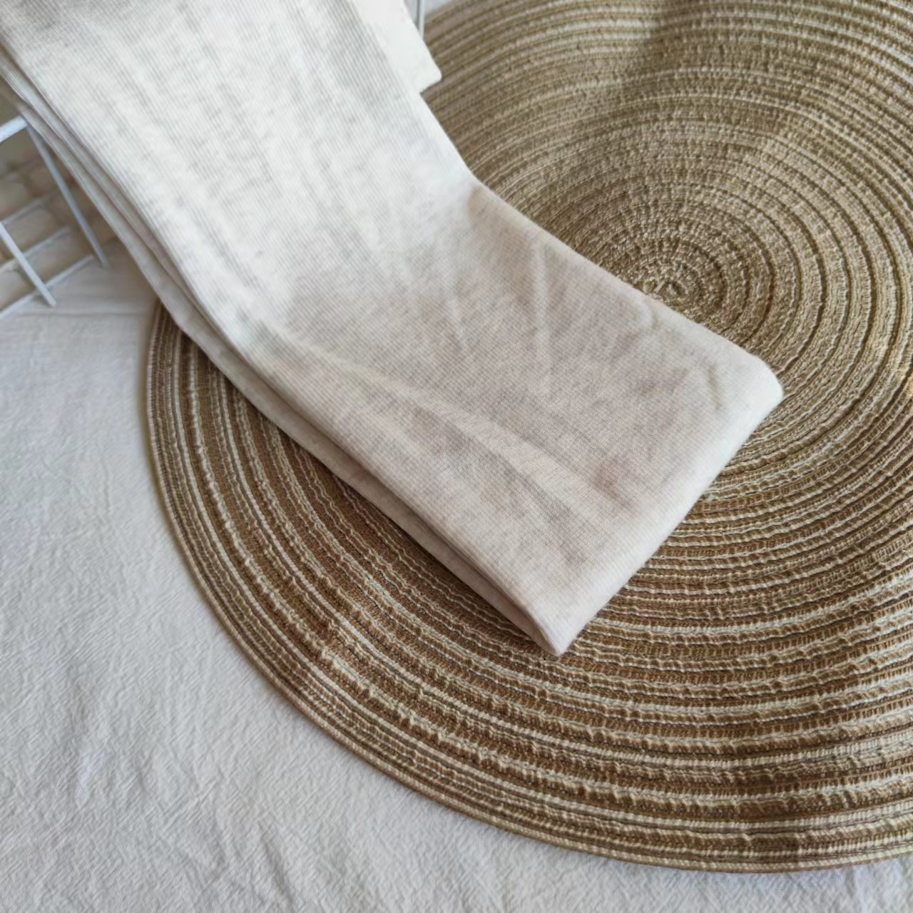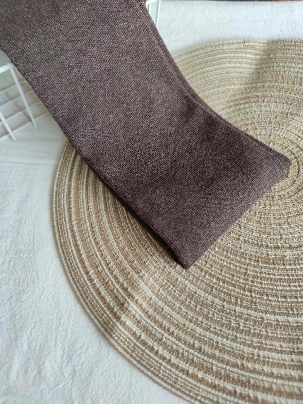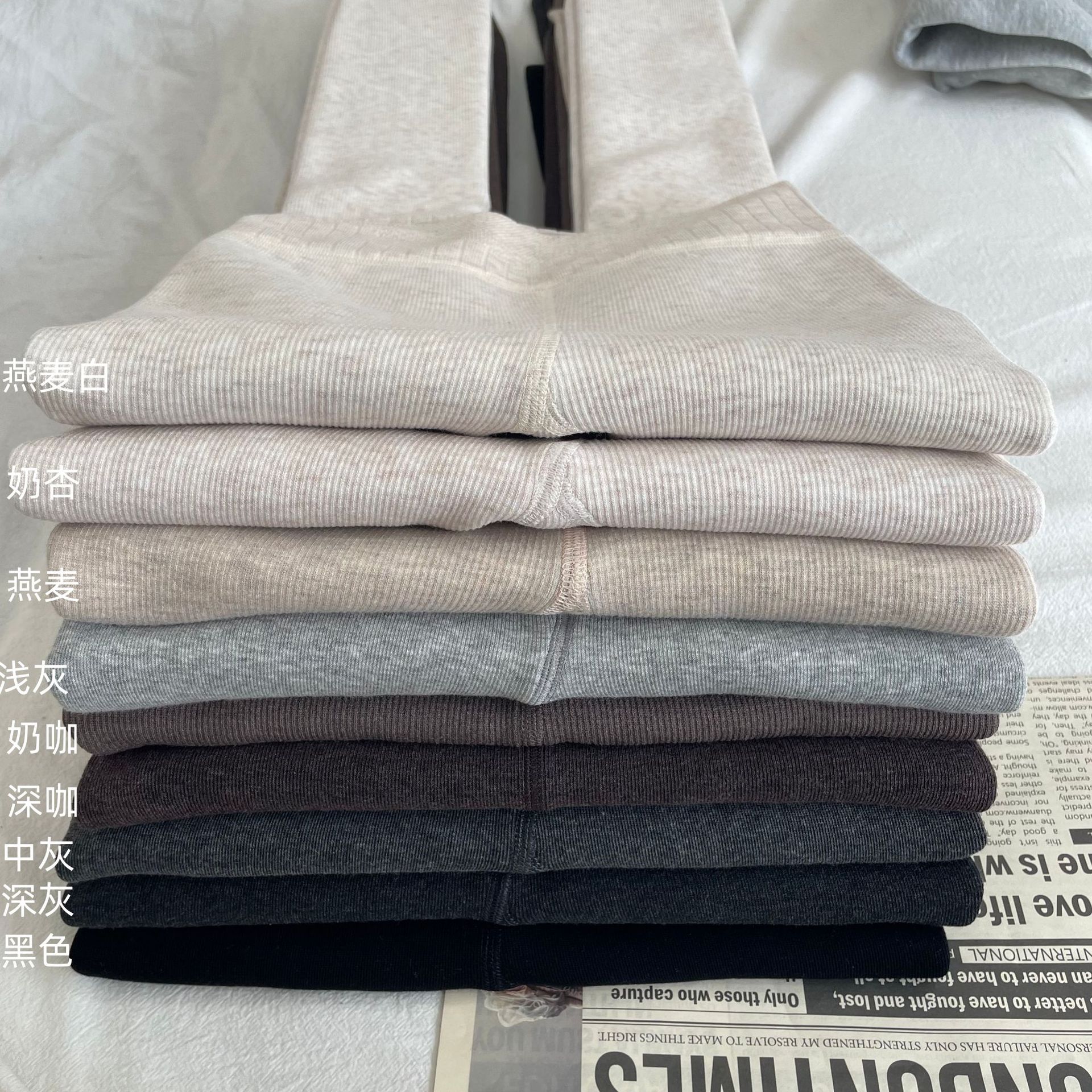 我们的打底裤是进口的机器和高品质原料做成的,无论是在设备,原料,染色,拼缝,定型包装等各个环节我们都比同行更专业