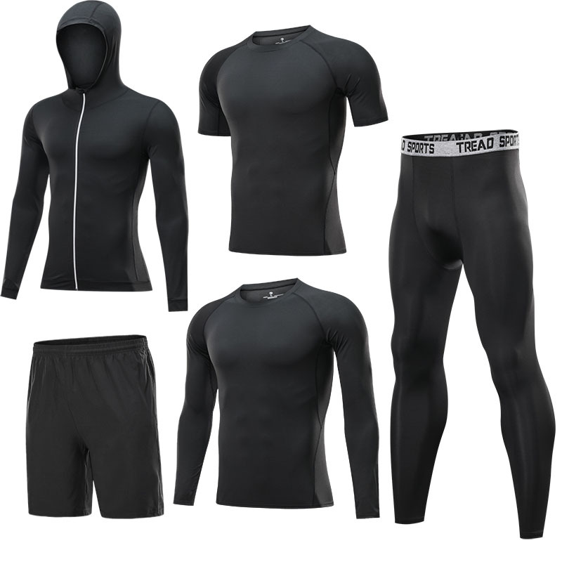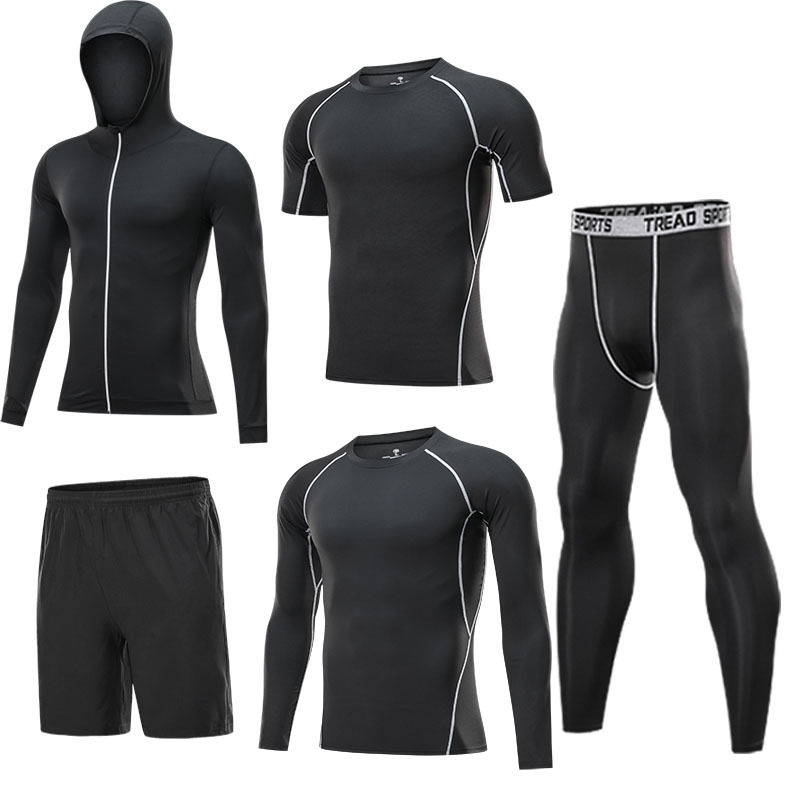 运动套装男夏季休闲男士健身服速干跑步训练运动健身裤套装五件套