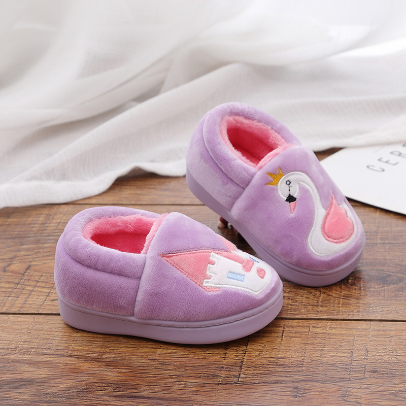 2026 가을 겨울 신상 아동용 홈웨어 면화 신발, 만화 자동차와 백조 디자인, 남아 여아 따뜻한 신발, 1-8세용